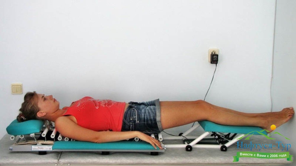 Детензор-терапия – одна из относительно новых (применяется с 1980-х годов) методик, обеспечивающих релаксацию околопозвоночных мышц и вытяжение позвоночника. Важно отметить, что методика является безопасной и комфортной для пациента, а вытяжение позвоночника производится в щадящем режиме, но позволяет добиваться существенных результатов. Для проведения процедуры используется детензор – специальный мат с системой наклонных ребер. В ходе сеанса на этот мат укладывается пациент (спиной), при этом детензор подстраивается под очертания его тела, что позволяет расслабить мышцы, разгрузить позвоночник, возвратить в нормальное положение смещенные позвонки.Медики санаториев нашей страны достаточно активно используют детензор-терапию не только при различных заболеваниях позвоночника, но также при остеопорозе, астме, головных болях, мигренях.