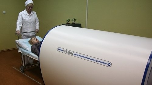 Магнитотурботрон – медицинский аппарат, предназначенный для проведения лечения и профилактики множества заболеваний с помощью одного из видов магнитотерапии (лечения воздействием магнитного поля). Эта аппаратура представляет собой массивную установку, которая создает вращающееся магнитное поле. В начале сеанса, а также в ходе его течения могут устанавливаться и изменяться параметры поля (частота, модуль, индукция), а также направление вращения. Благодаря воздействию генерируемого магнитотурботроном поля, в организме пациента возникают вихревые токи, обеспечивающие улучшение циркуляции крови, ускорение метаболизма, укрепление иммунитета.К несомненным достоинствам предлагаемых санаториями курсов лечения с использованием магнитотурботрона относится многоплановое воздействие на ткани без ограничения по глубине. Курсы такой терапии назначают при бронхитах, пневмонии, астме, остеохондрозах, остеоартрозах и артритах, травмах, синдромах хронической утомляемости, нарушениях в работе сердечнососудистой и нервной систем, ЖКТ, мочеполовых проблемах, заболеваниях кожи, иммунодефицитных и опухолевых заболеваниях.