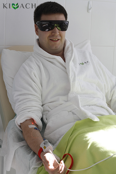 Инновационный метод с применением лазерной технологии. С помощью тонкой полой иглы в сосудистое русло вводится одноразовый стерильный световод, который проецирует в сосуд лазерное излучение. Энергия лазера «выбивает» из молекул крови электроны. В результате изменяется структура молекул. Возвращаясь в прежнее состояние, молекулы обновляются. Это приводит к оздоровлению клеток, тканей, органов и систем организма.