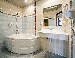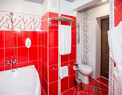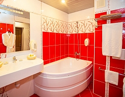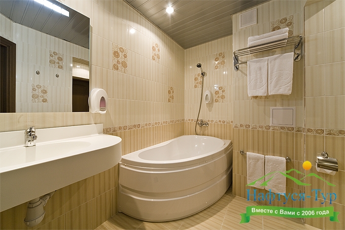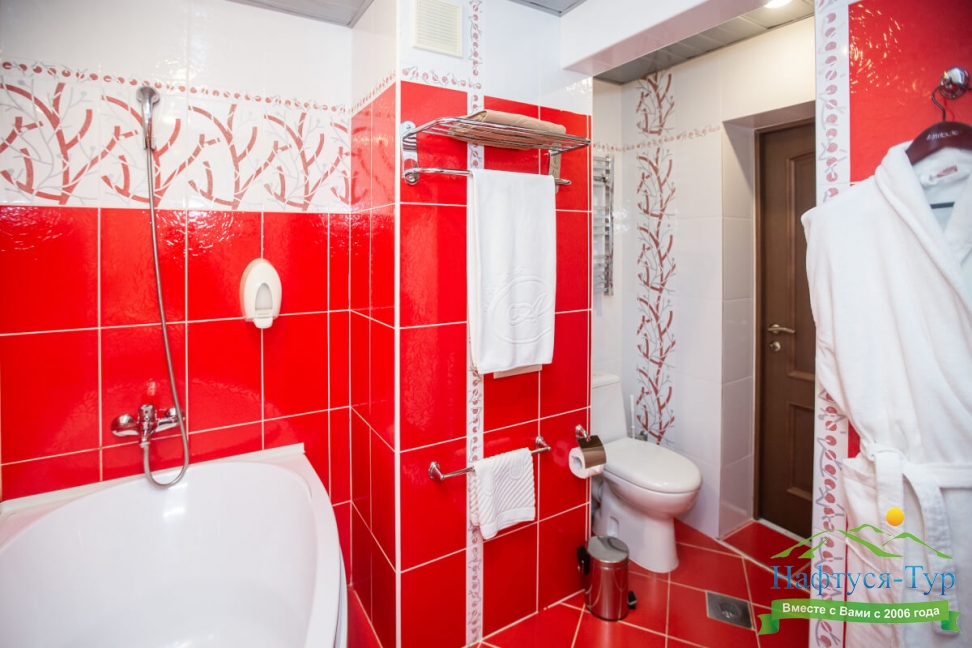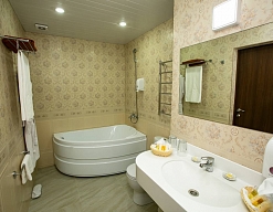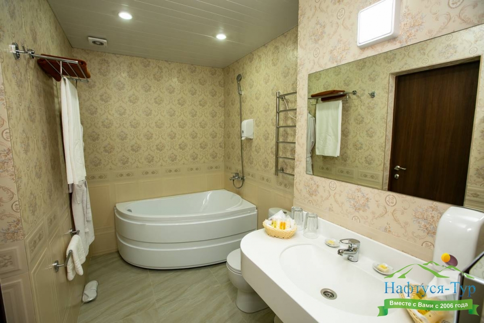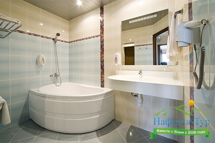 с ванной, с джакузи, тапочки, туалетные принадлежности, фен, халат