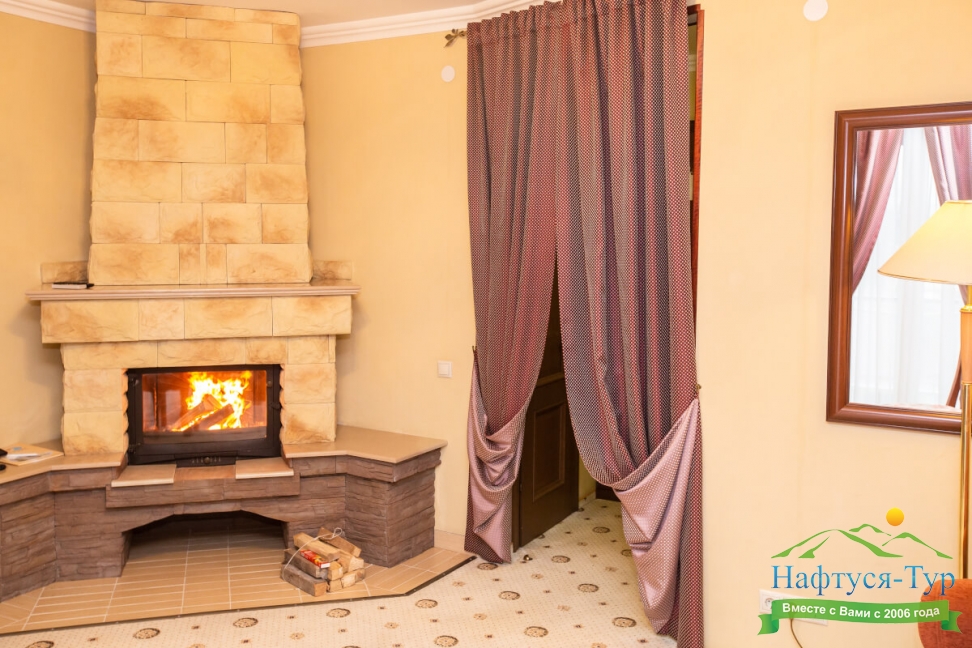 камин, сейф, сплит-система, телевизор ЖК, телефон, холодильник, чайный набор посуды, электрочайник