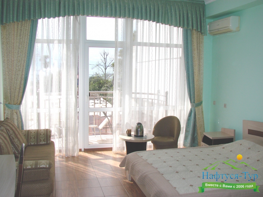 Останавливалась в данном отеле с мужем. Отлично провели время. Очень хороший отельчик. Расположен он в центре старой Гагры. Есть прекрасные номера с видом на горы и с видом на море. Комната просторная, везде порядок и чистота.
