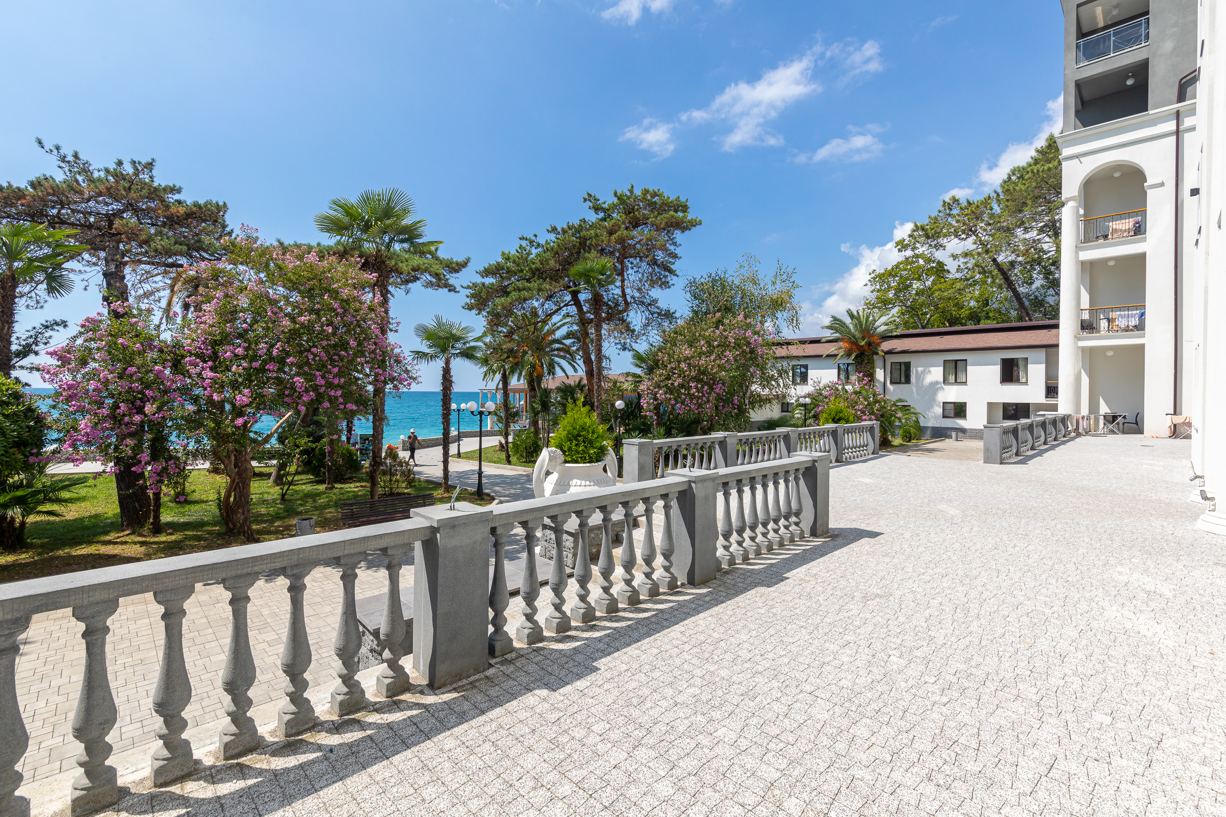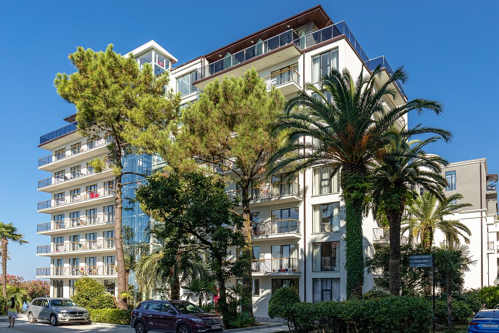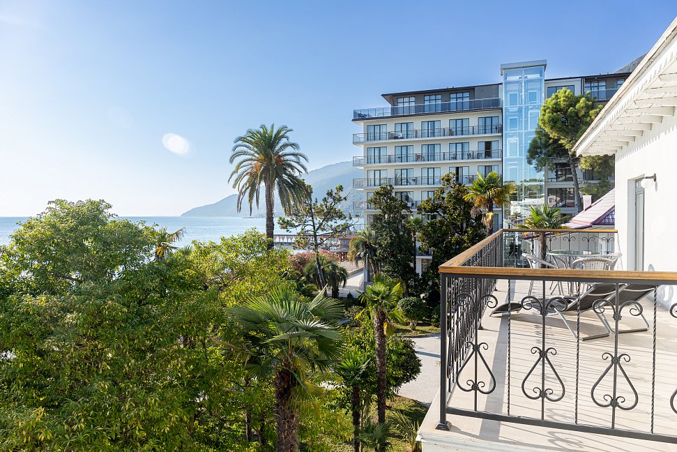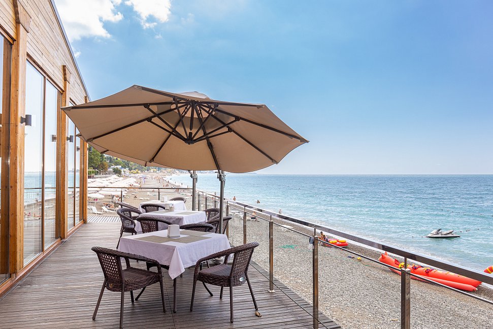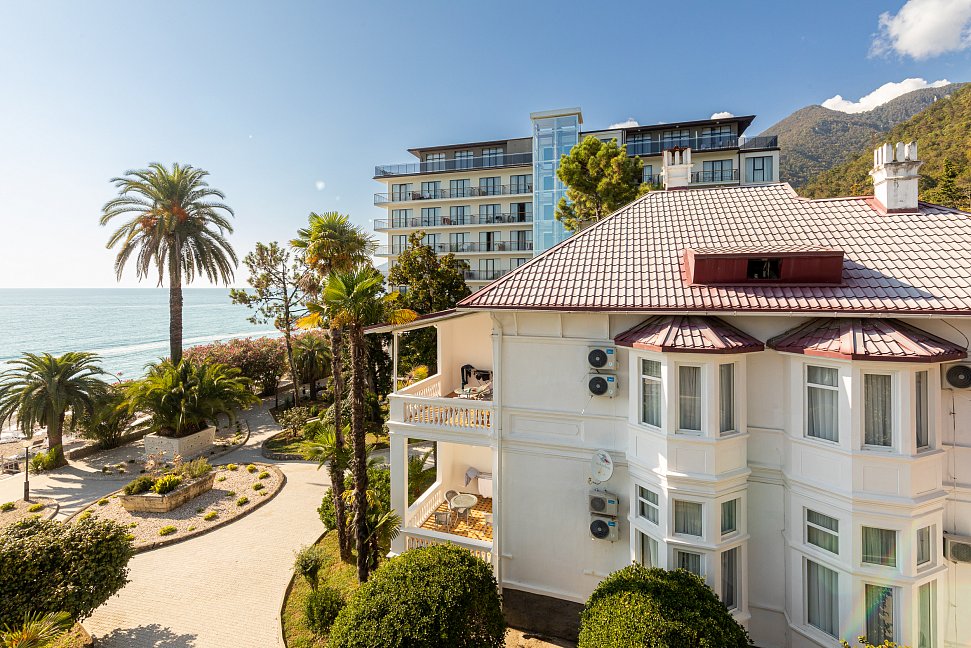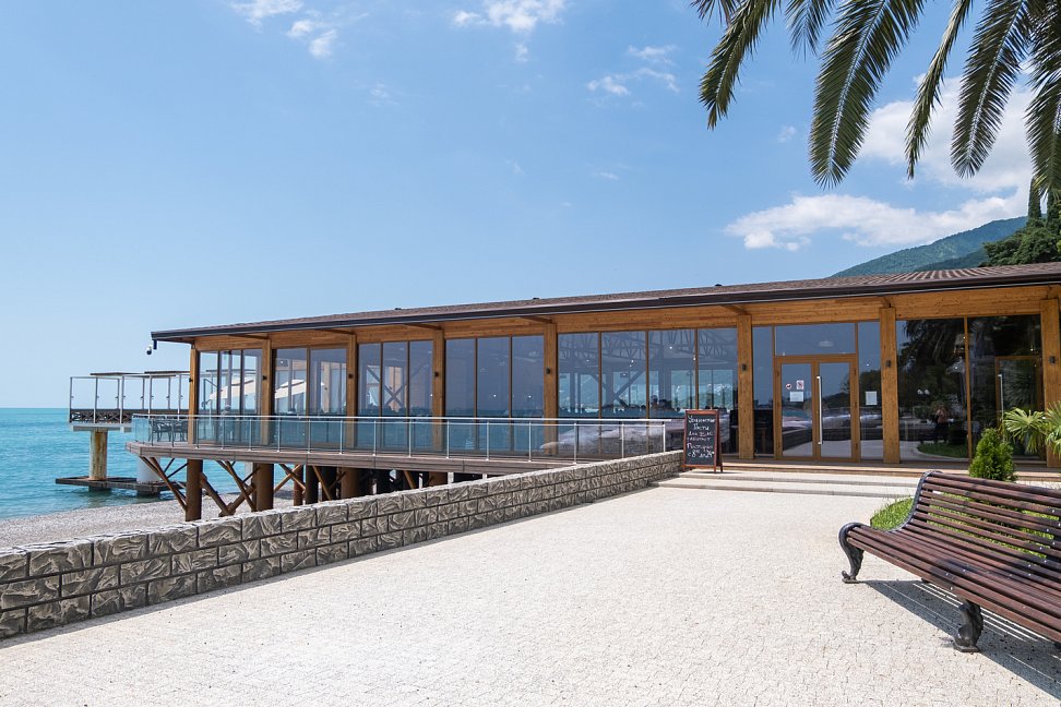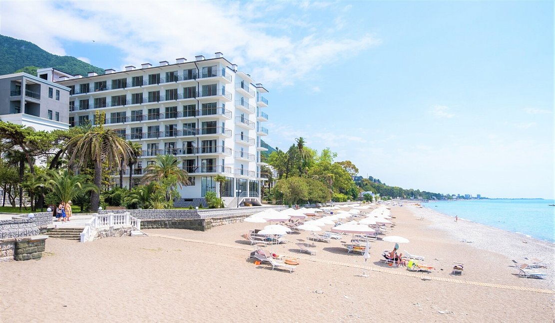 Расположение: Первая линия у моря (50 м до пляжа), 40 км до аэропорта Адлера
