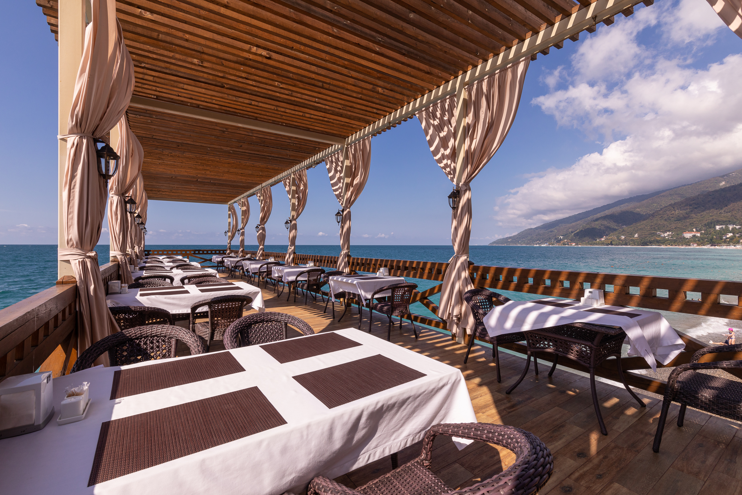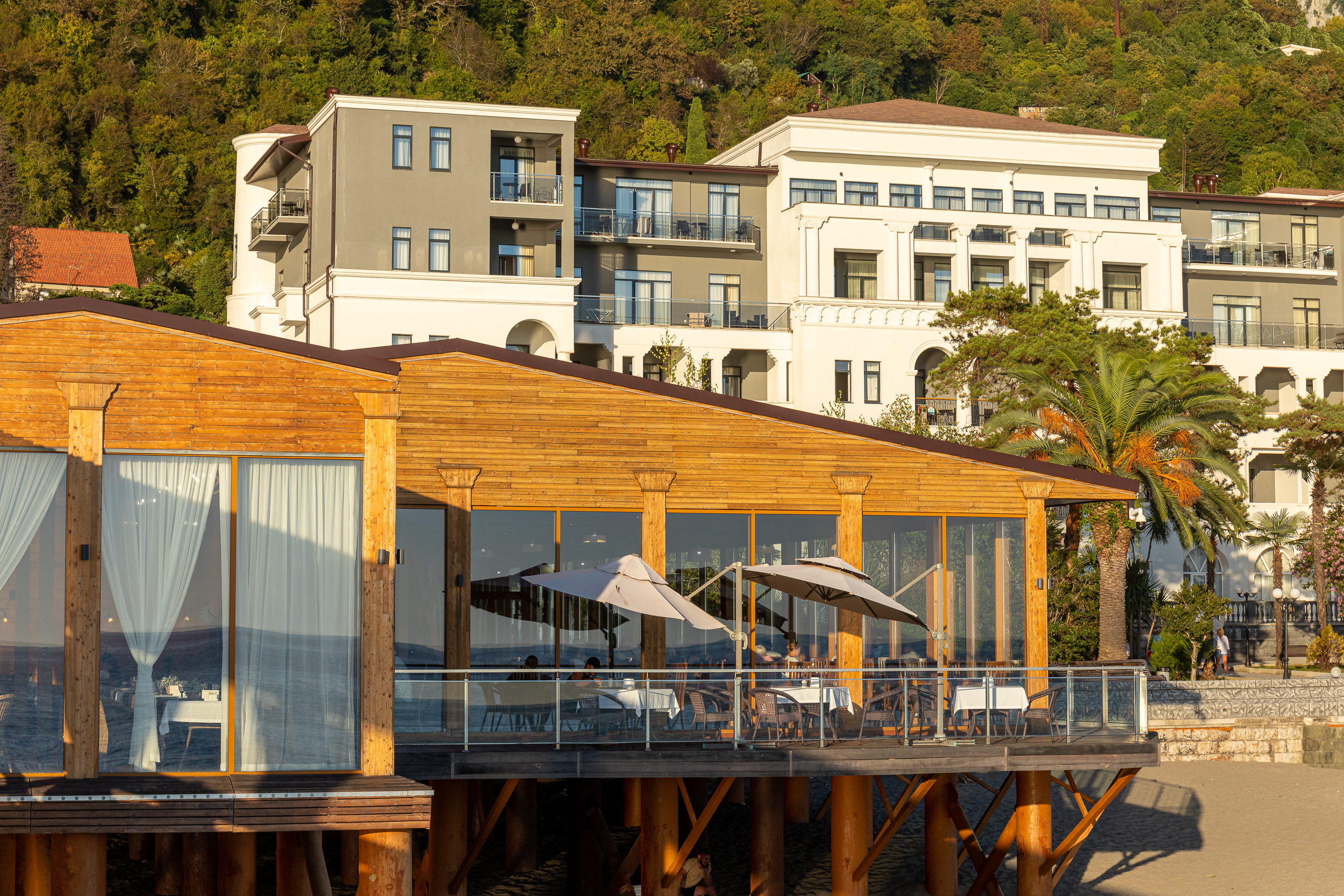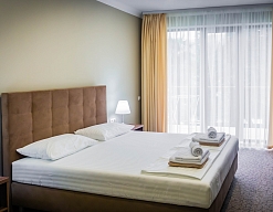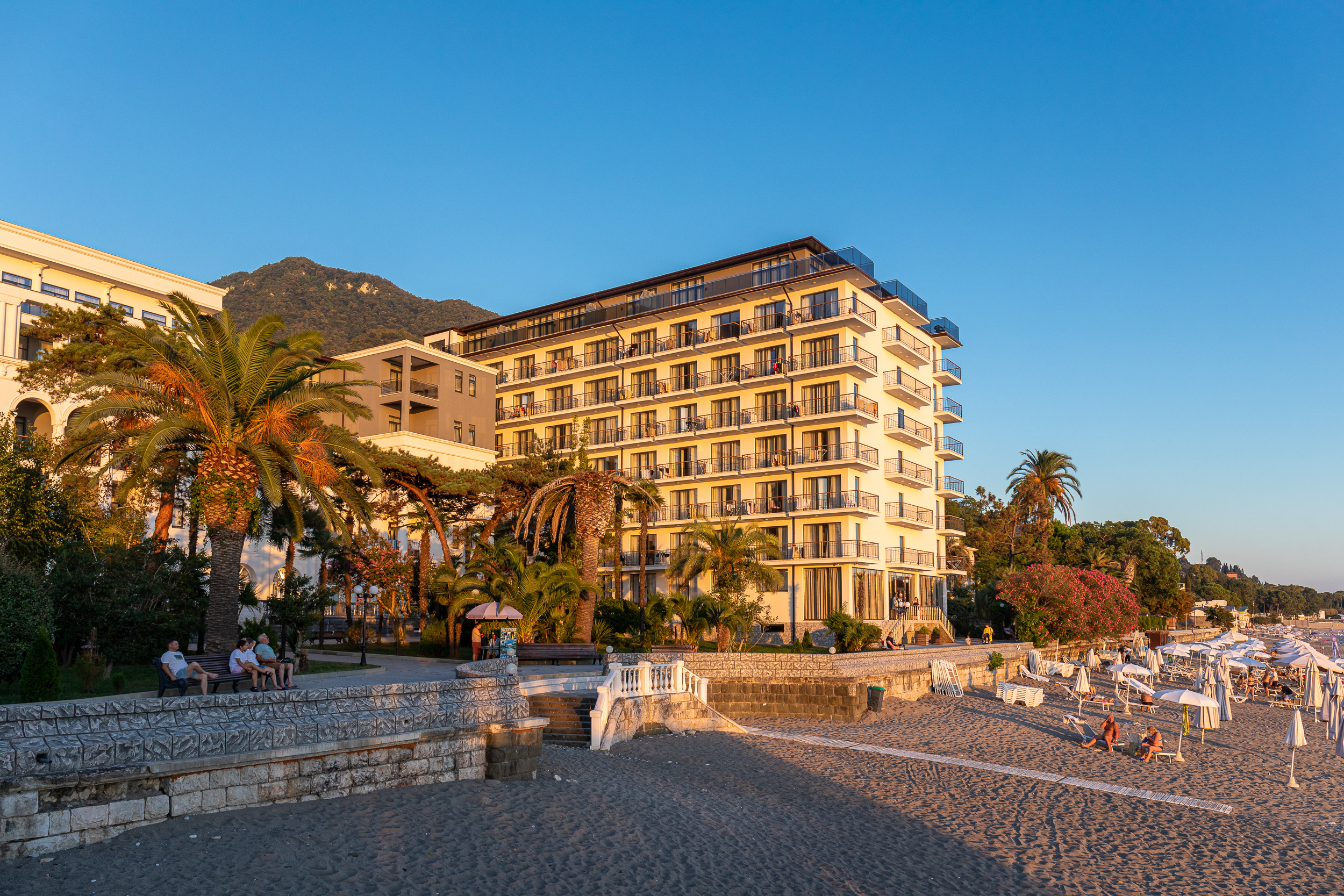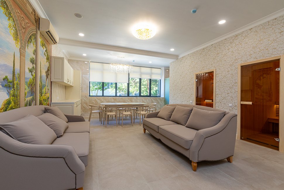 Расположение: Первая линия у моря (50 м до пляжа), 40 км до аэропорта Адлера