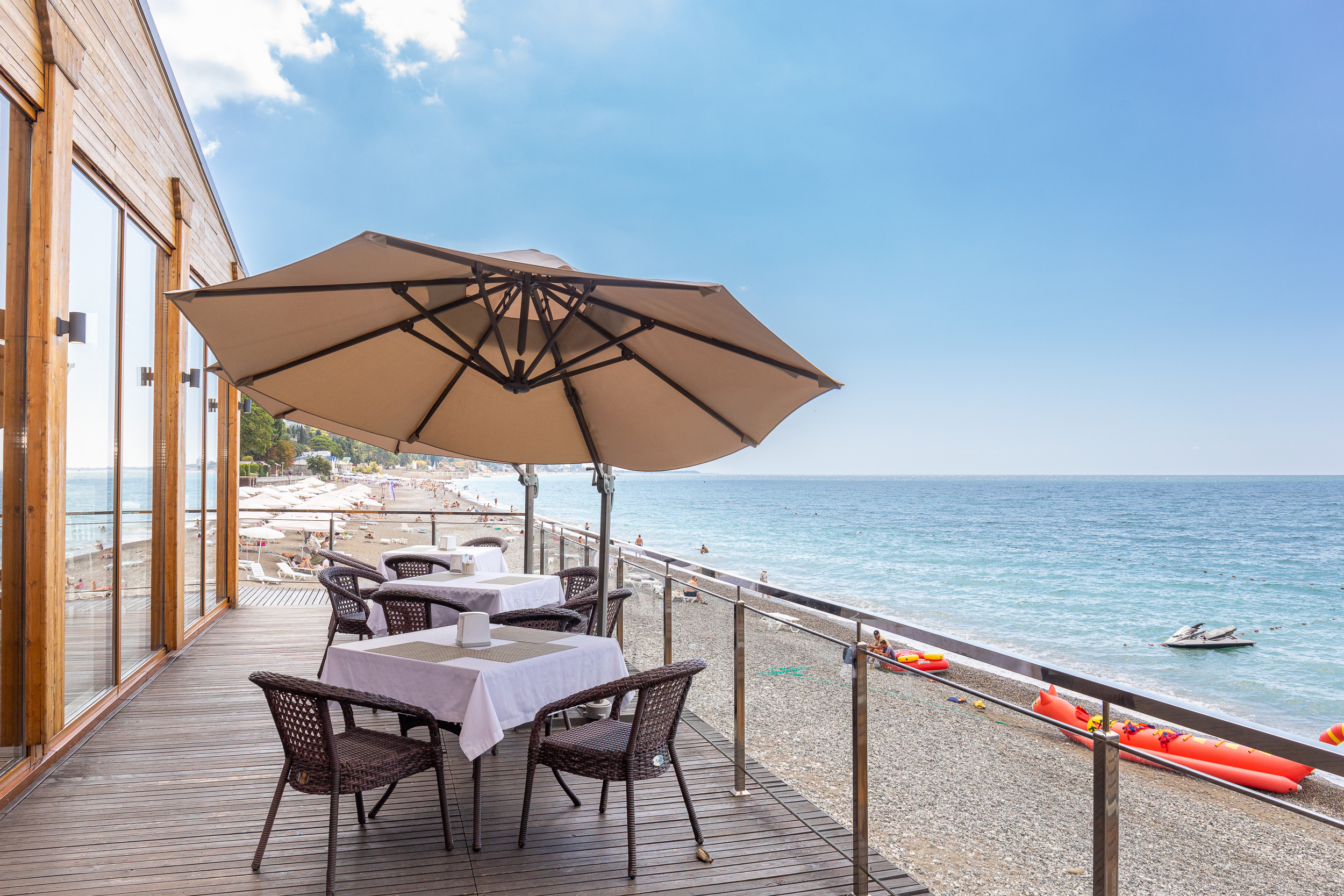 - услуги на пляже: шезлонги, зонты