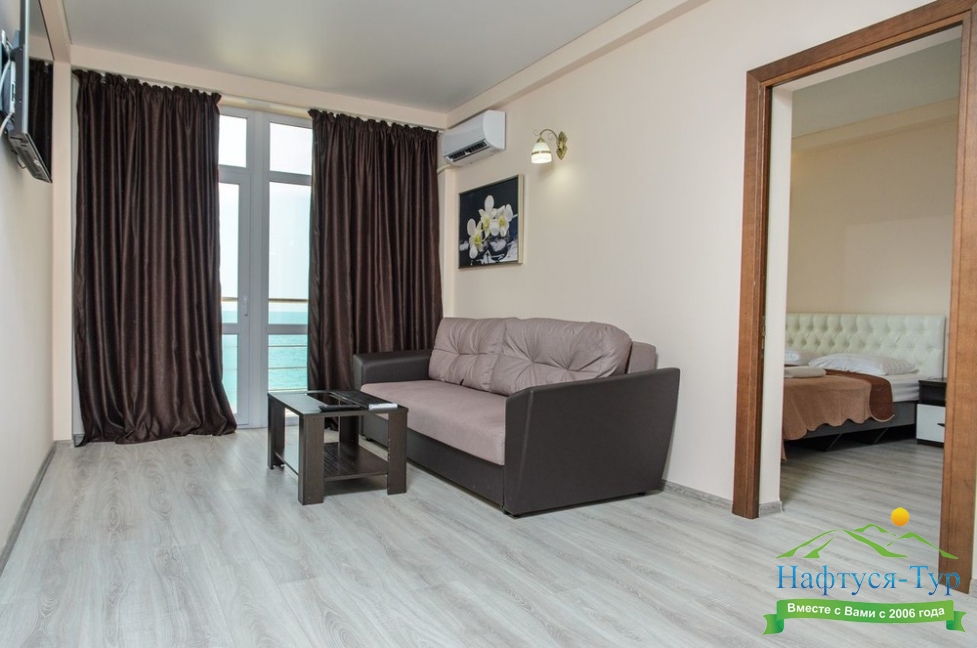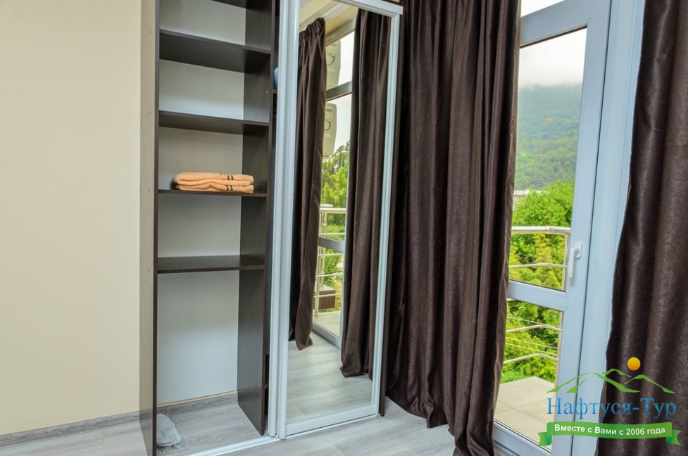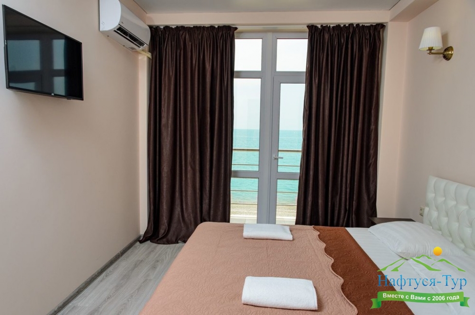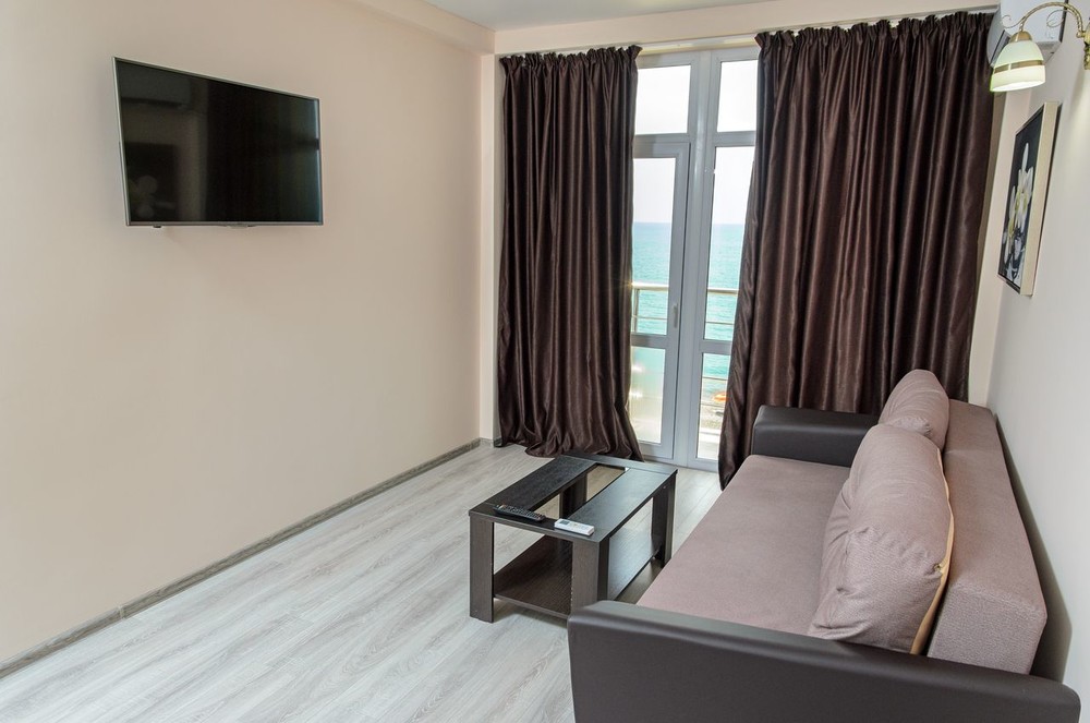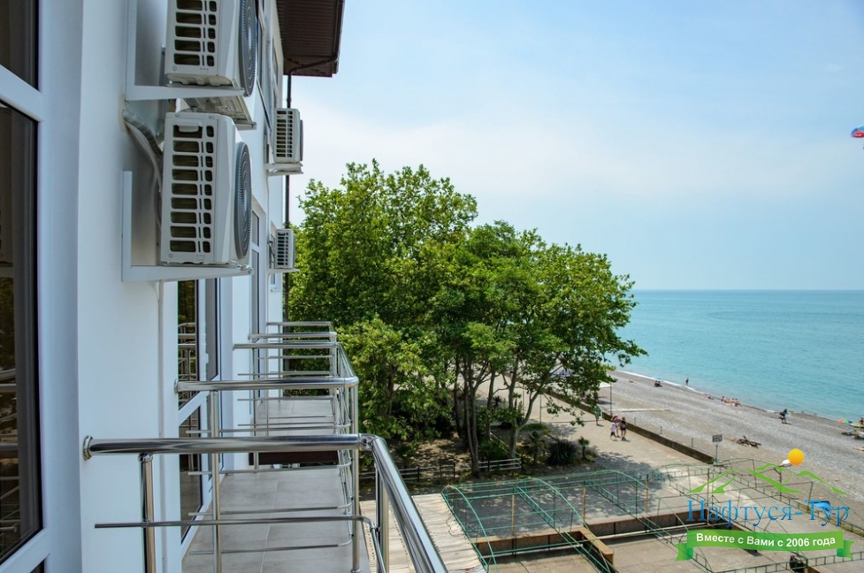 Расположение: Первая линия у моря (10 м до пляжа), 60 м до центра Гагры, 40 км до аэропорта Адлер