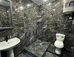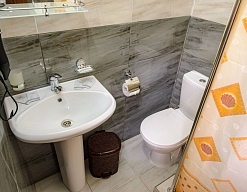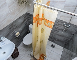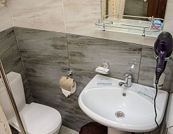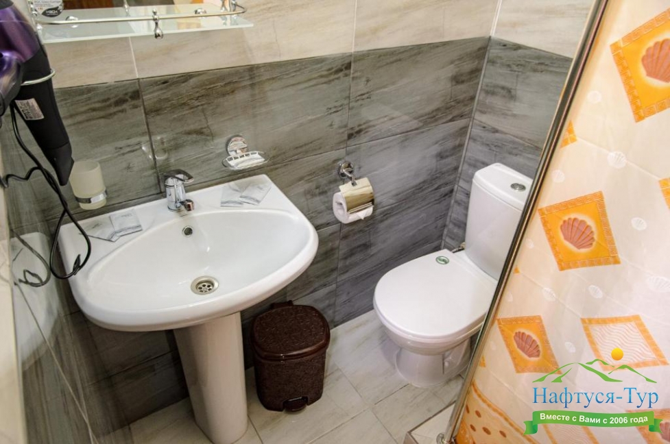 с душем (поддон), туалетные принадлежности, фен