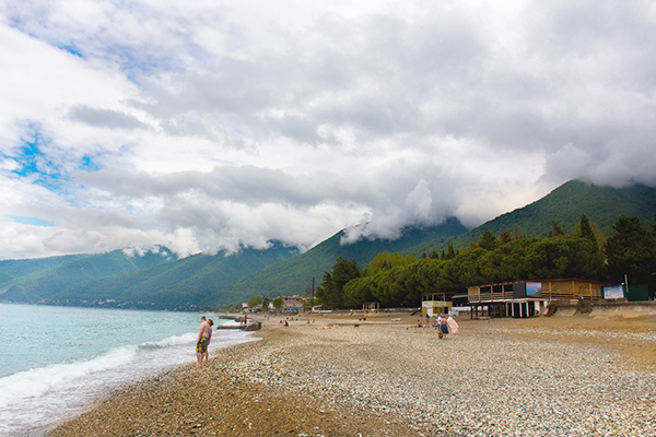Поездом или самолетом – до г. Сочи (Адлер), далее на общественном транспорте или на такси до «Казачьего рынка» (8 км от ж/д вокзала, 15 км от аэропорта), затем пройти пешком около 500 м до пограничного поста на р. Псоу до границы России и Абхазии. После самостоятельного прохождения паспортного и таможенного контроля до места отдыха можно доехать на автобусе, маршрутном такси или воспользоваться услугами частных водителей.