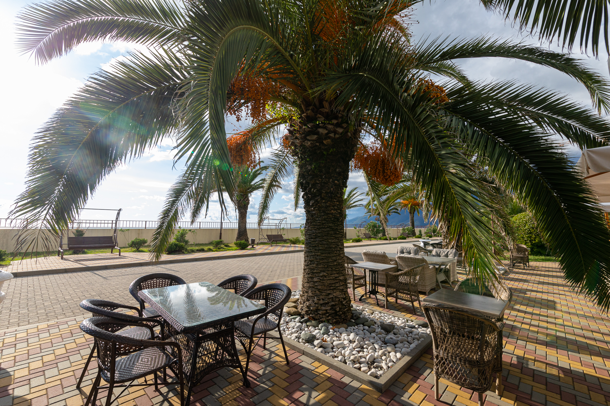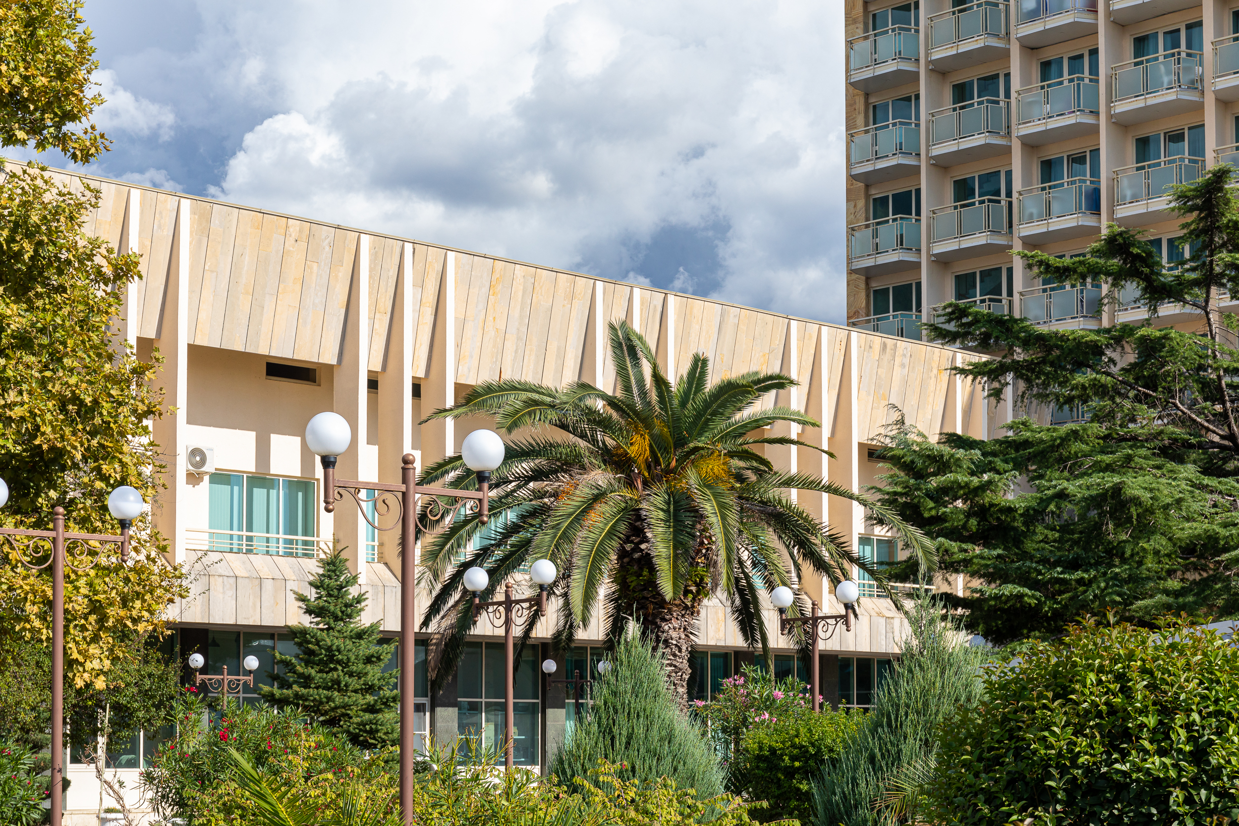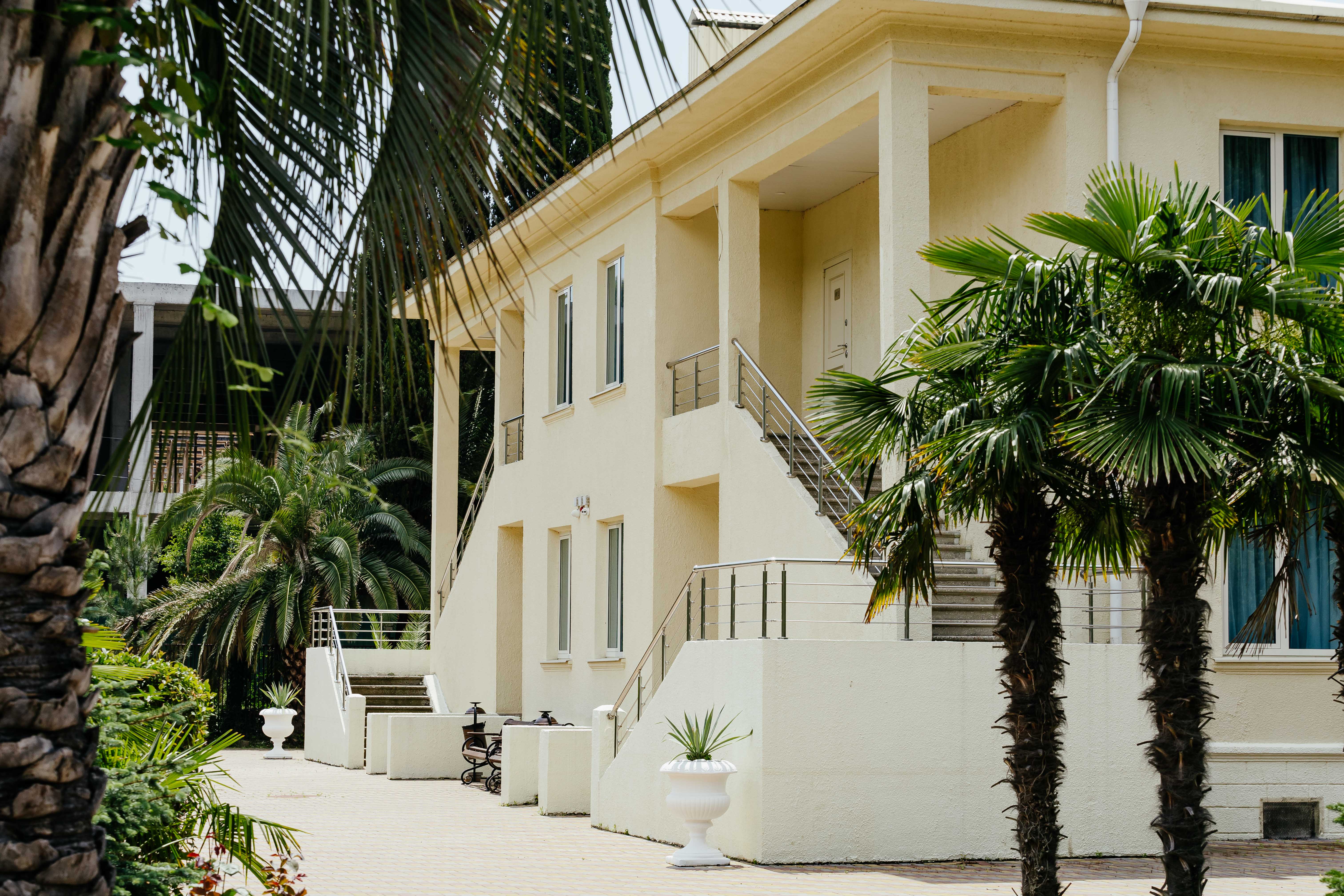Всего две звезды – не очень много. Хотя пансионат уютный. И всего несколько минут до пляжа и центрального рынка, что тоже важно. Красивая территория с цветами и пальмами. Когда-то этот пансионат славился на весь СССР, как нам рассказывали.