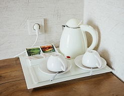 набор посуды, плита электрическая, сейф, сплит-система, телевизор, телефон, холодильник, чайная станция