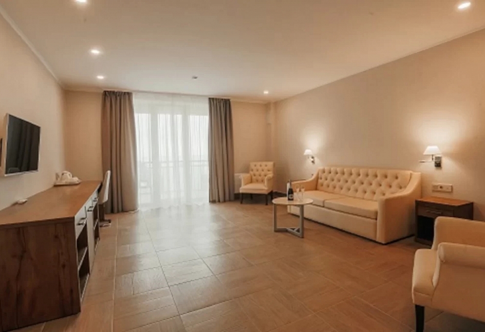 Расположение: Первая линия у моря (50 м до пляжа), 1 км до центра, 42 км до аэропорта Адлер