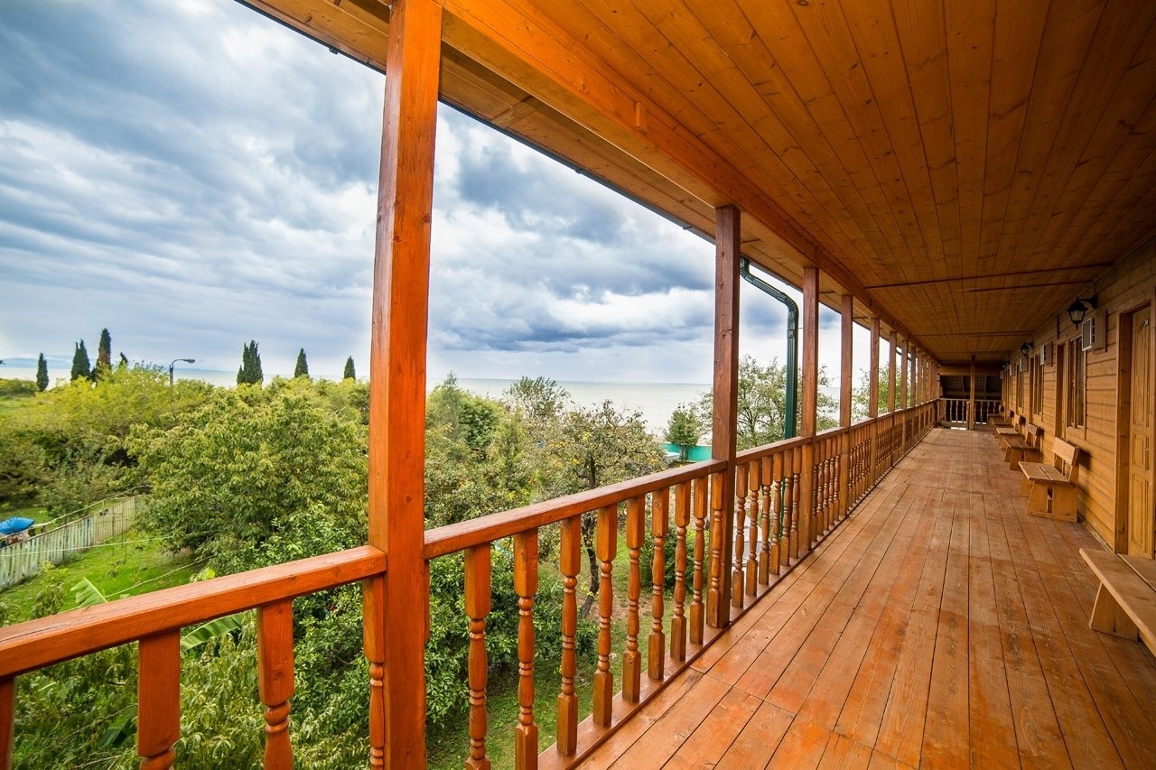 Расположение: Первая линия у моря (30 м до пляжа), 80 км до аэропорта Адлер. Гудаута