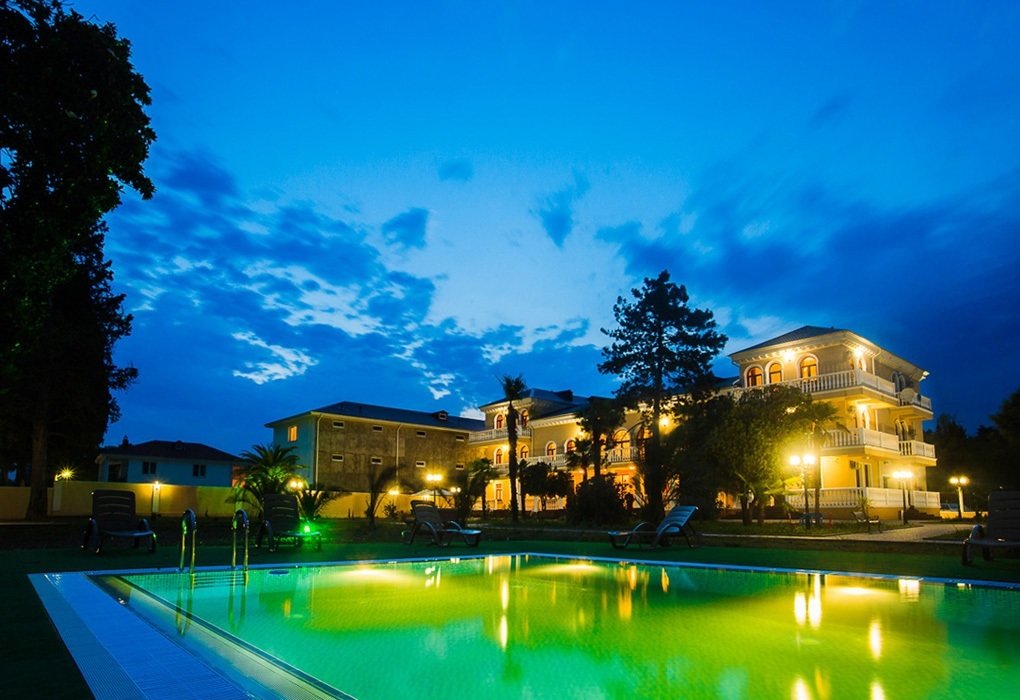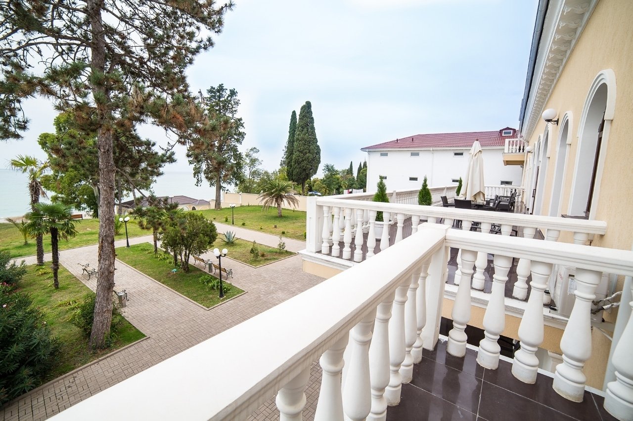 Расположение: Первая линия у моря (50 м до пляжа), 82 км до аэропорта Адлер