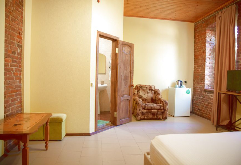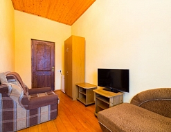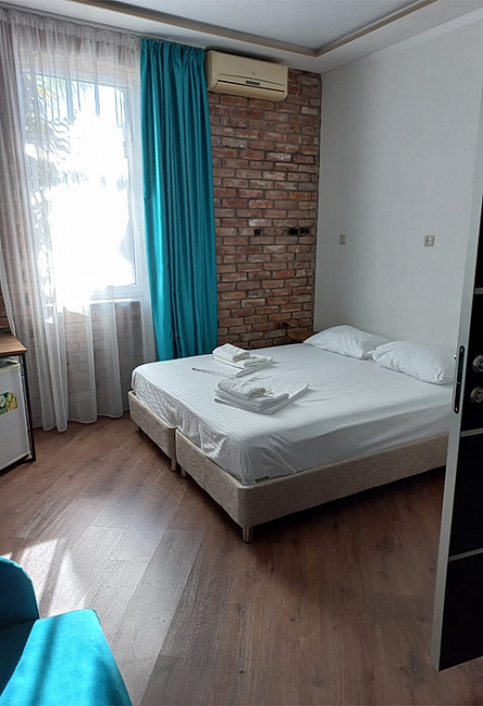 Расположение: Первая линия у моря (20 м до пляжа), 100 м до центра, 100 км до аэропорта Адлер