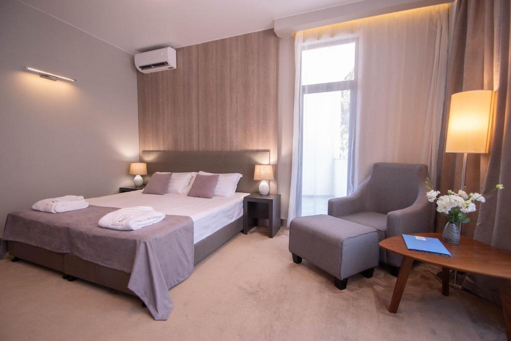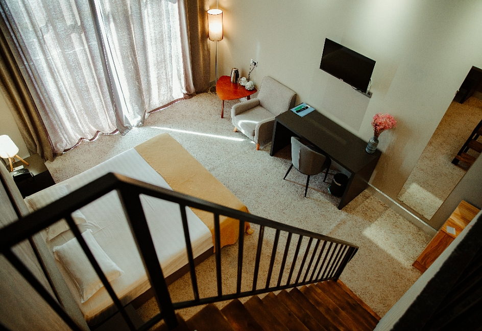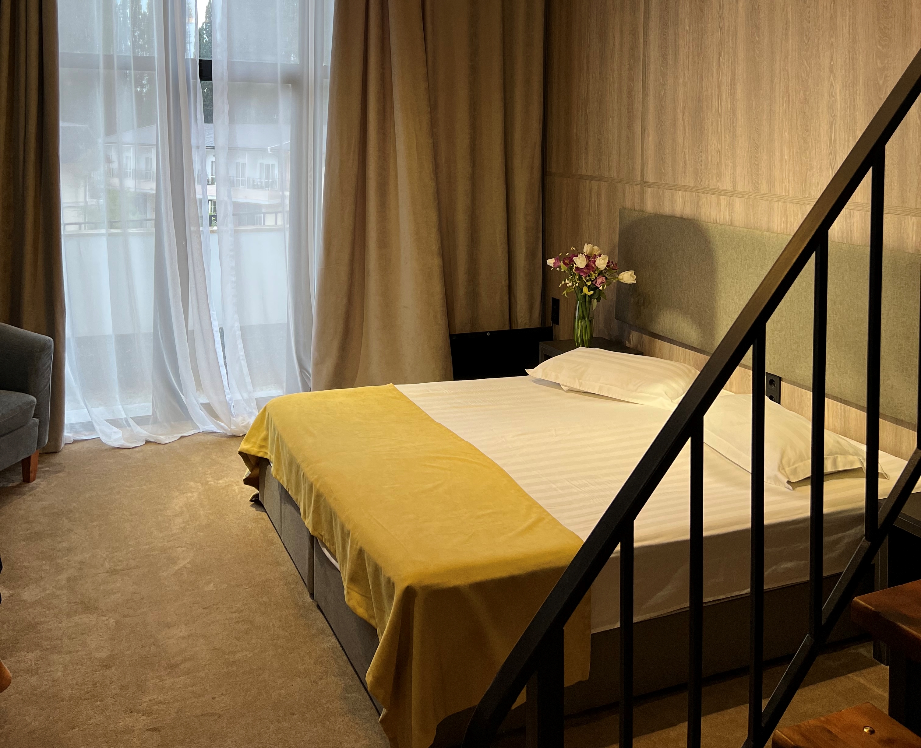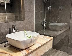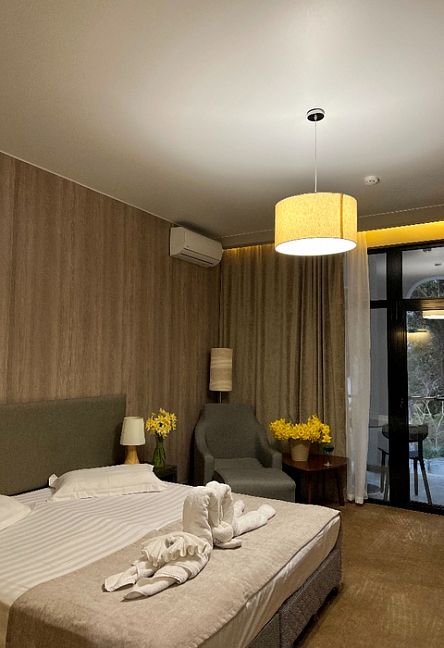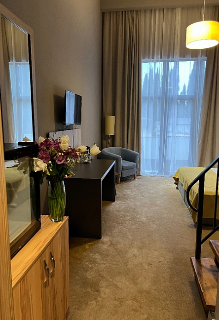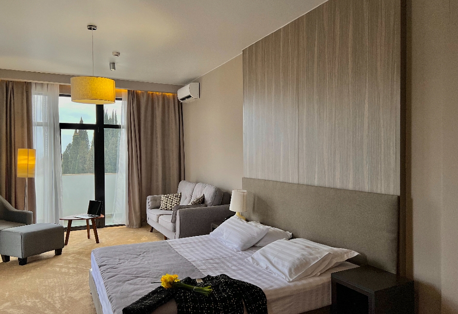 · Отель превзошёл все наши ожидания. Один из лучших и перспективных отелей в Новом Афоне. Очень большой номер с дизайнерским решением, новая мебель, очень хорошая звукоизоляция. В ванной регулируемый теплый пол и сушилка.