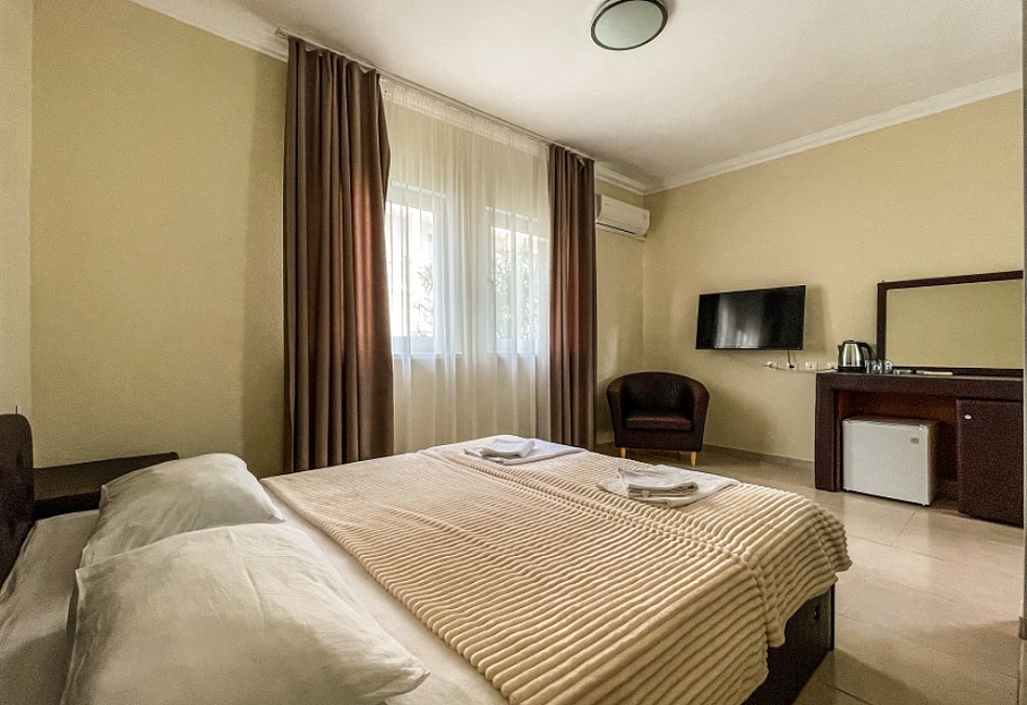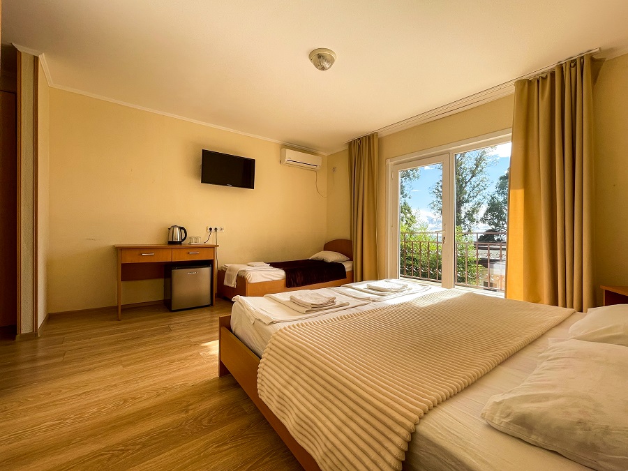 Расположение: Первая линия у моря (50 м до пляжа), 4 км до центра Новый Афон, 96 км до аэропорта Адлер