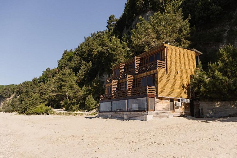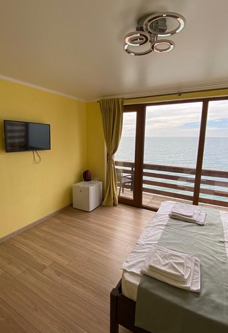 Расположение: Первая линия у моря (20 м до пляжа), 60 км до аэропорта Адлера