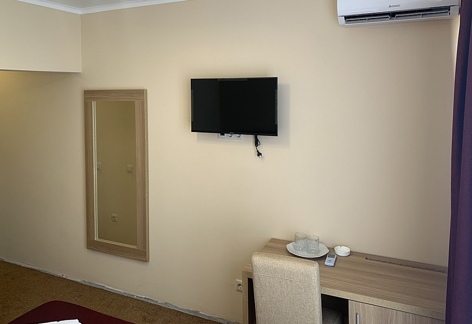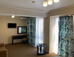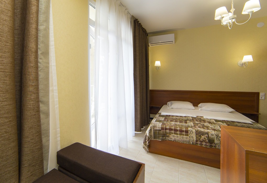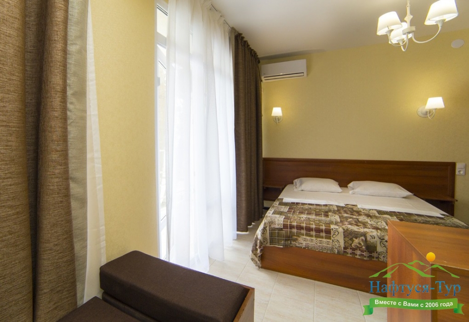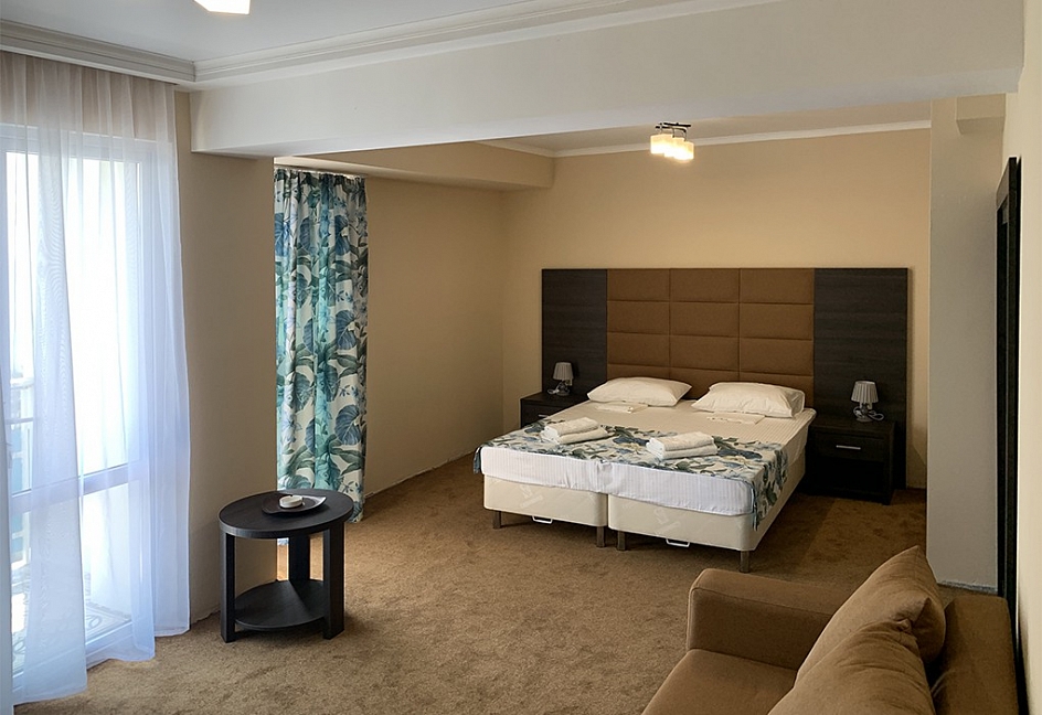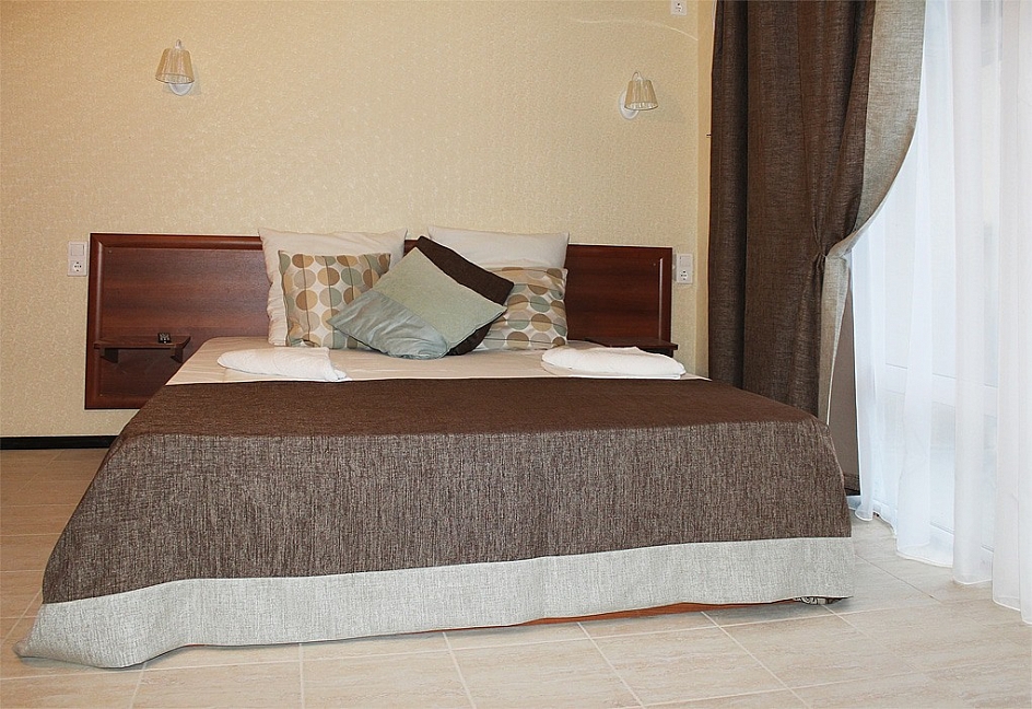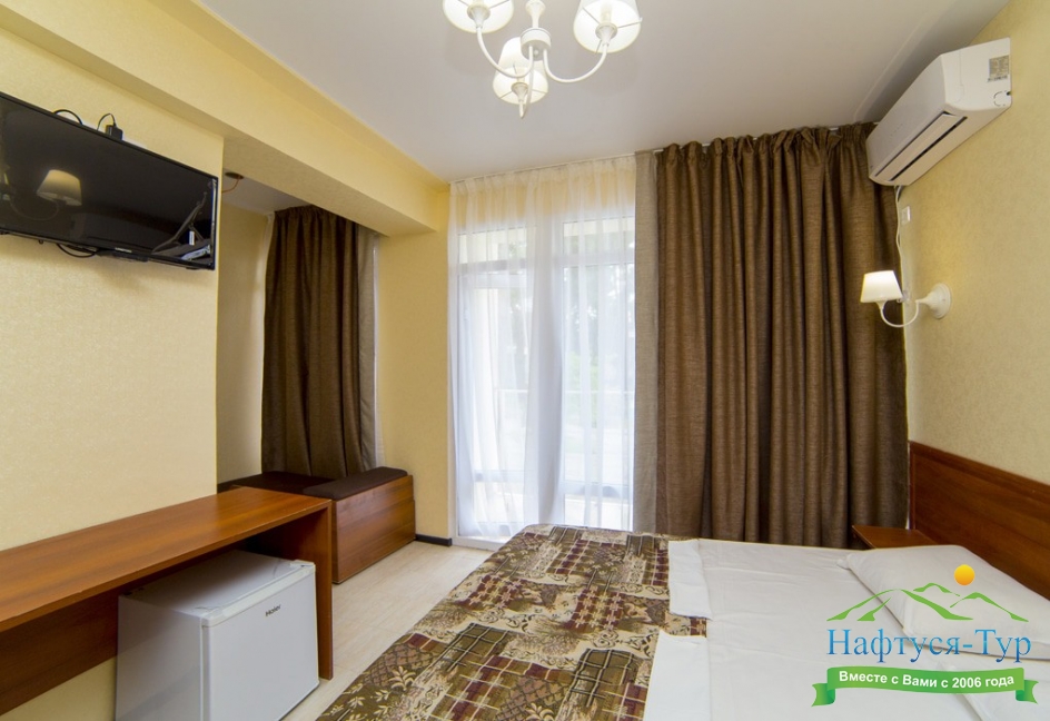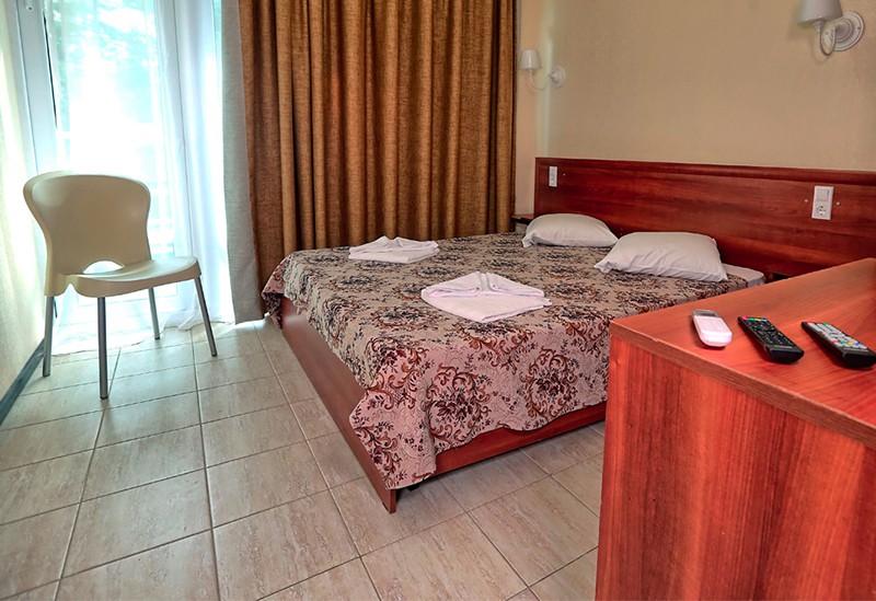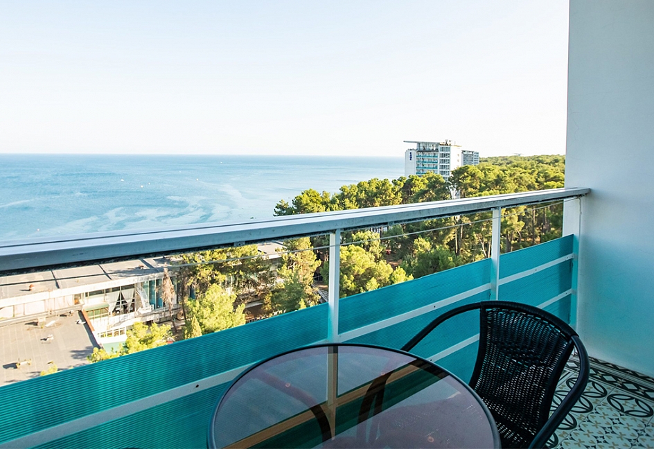 Вид на море и на горы,уборка номера почти каждый день,не высокий этаж 5, душ+туалет в номере,плазменный телевизор,кровать большая двуспальная,шкаф,стол,две тумбочки,холодильник,плотные занавески(чтоб днем не поджариться). Питание среднее-диетическое.Но если хочешь остроты,то стоят разные соусы.Голодным не останешься. Море чистое,голубое.Но в октябре часто штормит.Теплое +23*. Купались каждый день.А горы-какие же красивые и со снегом.Так классно!!!