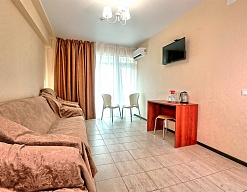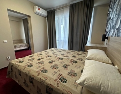 Расположение: Первая линия у моря (60 м до пляжа), 50 м до центра, 56 км до аэропорт Адлер