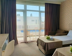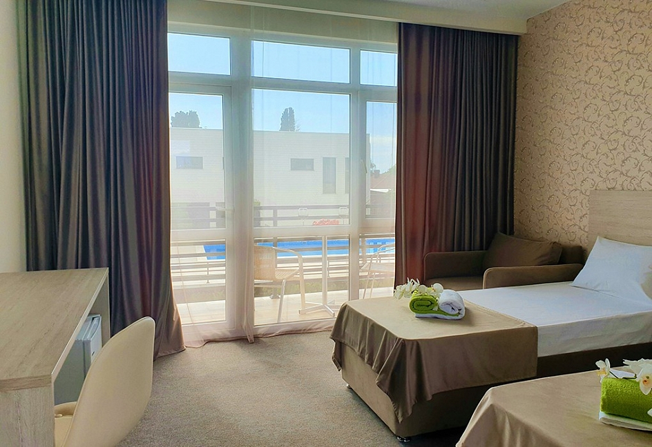 Отличный отель! Всё в точности как заявлено на фото! Были в начале октября, поэтому очень рассчитывали на бассейн, чтобы искупаться если не в море, так хотя бы в нем. Ожидания оправдались сполна. Дружелюбный и любезный персонал, большой чистый номер, ухоженная территория.