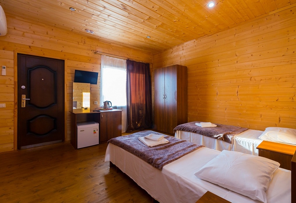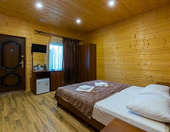 Проживали в этом отеле в начале сентября. Огромный плюс: близко к морю. Недостатки: в номере ни разу не убирали,полотенца ни разу не меняли (как было заявлено).Может,это и не приципиально,но за услуги оплачено. В близстоящей столовке дороговато,и порции не такие уж и большие. Сравниваю со столовыми в Гагре и Пицунде. Ну,если смотреть на сам отель и территорию,то всё здОрово,красиво.