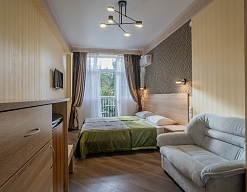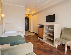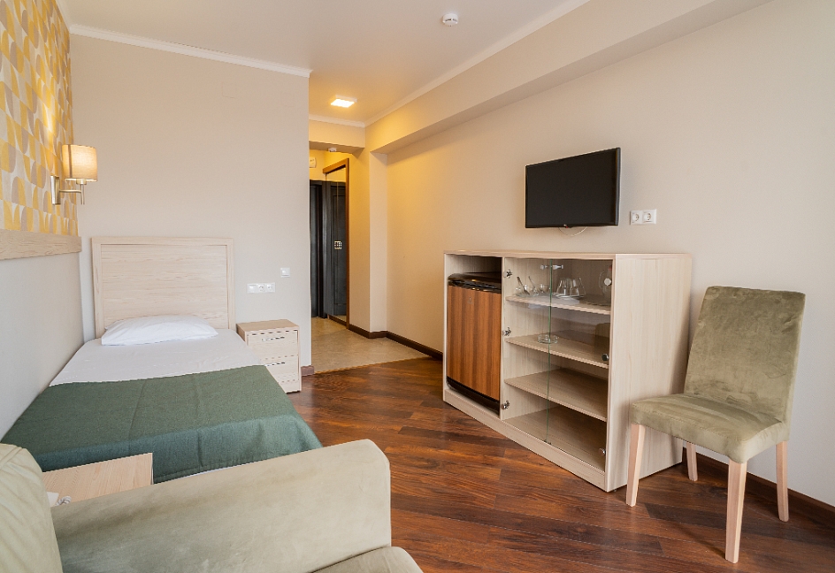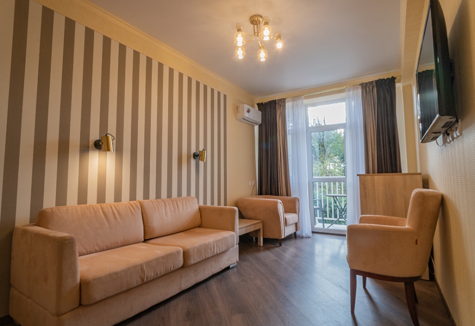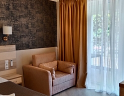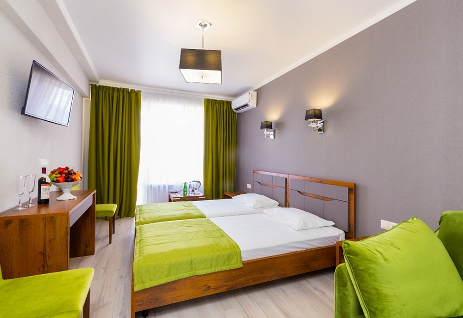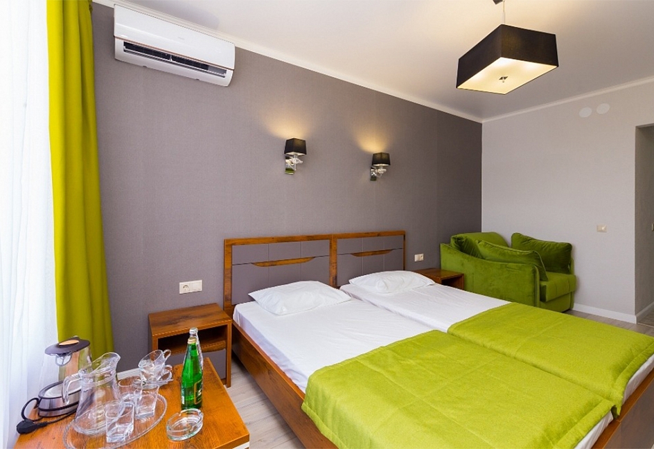 Отдыхали в «Литфонде» в августе 2015. Проживали на втором этаже. Были семьей с ребенком 4 лет. Номер попался неплохой, большая кровать на двоих с хорошим матрасом. Как дополнительное место, было предусмотрено кресло-кровать.