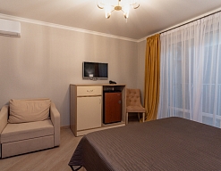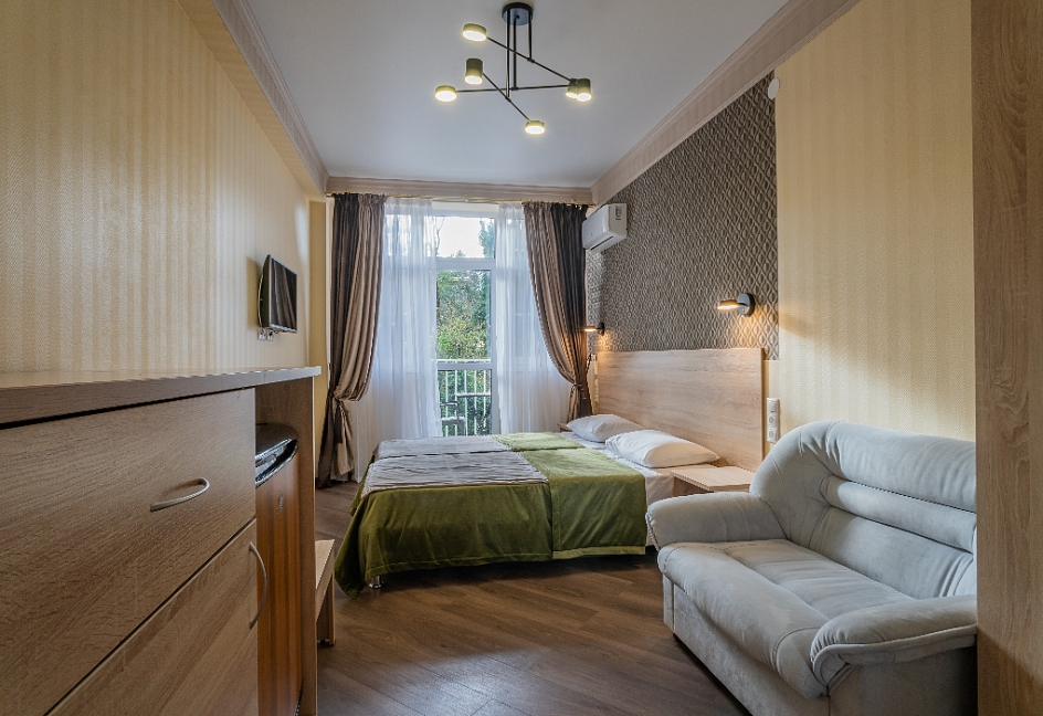 Расположение: Первая линия у моря (70 м до пляжа), 3 км до центра, 59 км до аэропорта Адлер