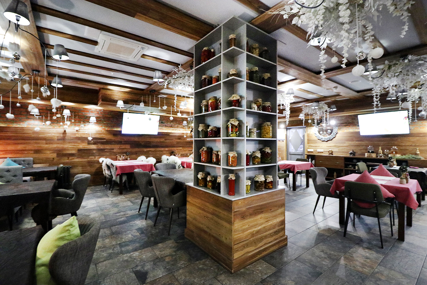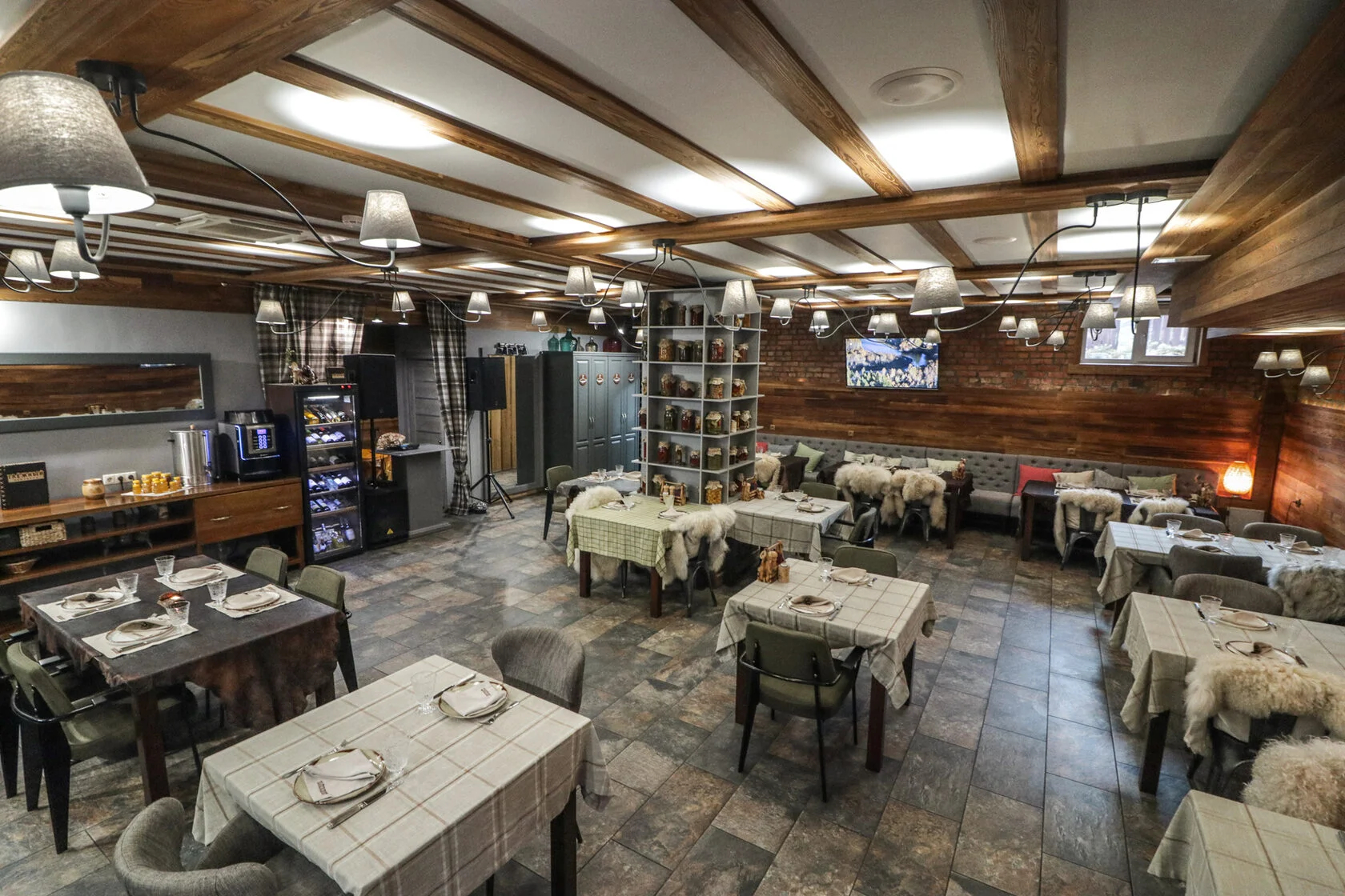 Отель, окруженный благоустроенным парком с сетью дорожек, качелями и беседками, с широкой террасой, примыкающей к озеру, и собственной вертолетной площадкой, построен из древесины сосны. Роскошный, тщательно продуманный интерьер сделает Ваш семейный отдых комфортным, уютным и беззаботным.