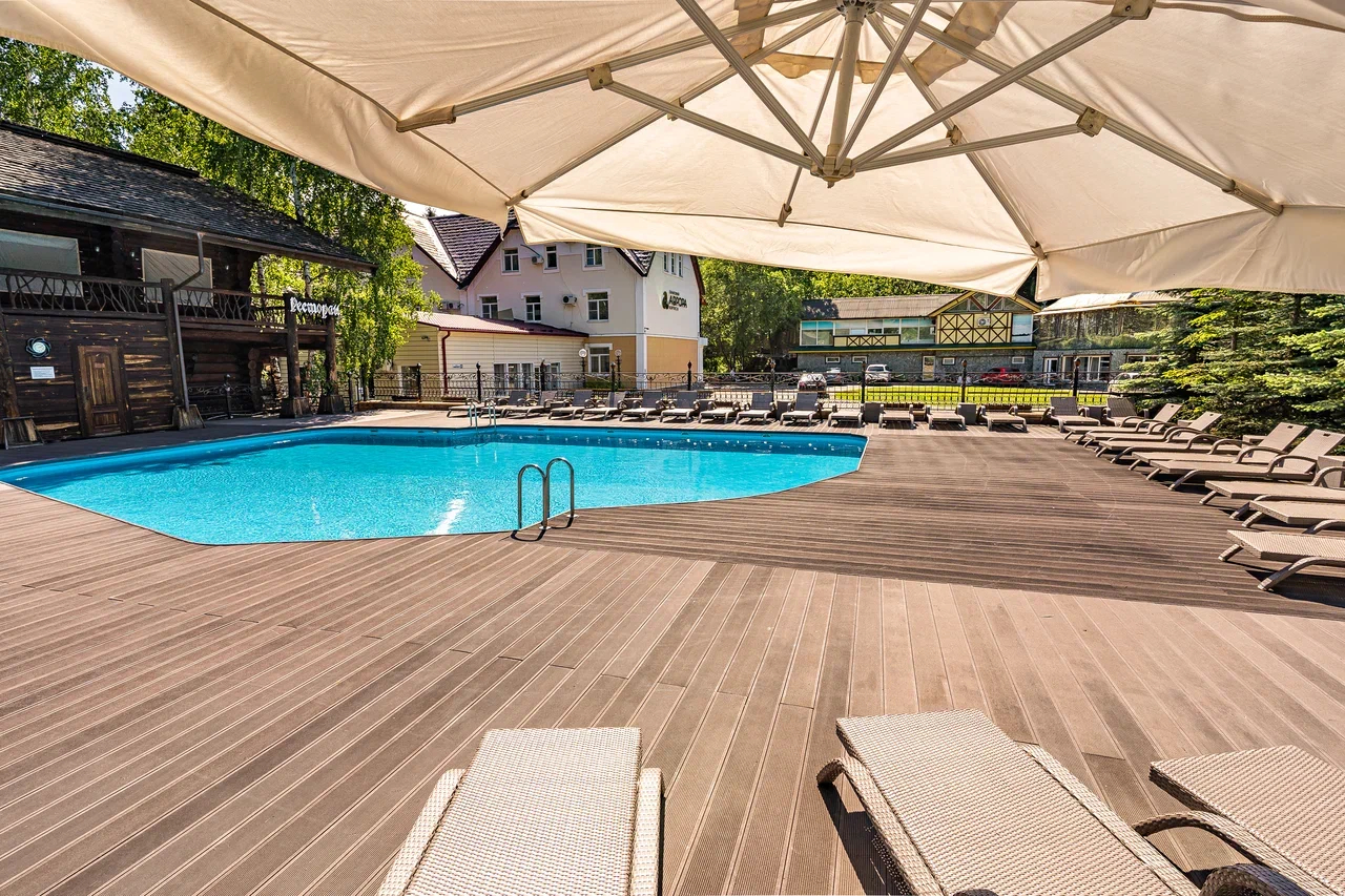 Изюминка комплекса - Аква-центр с русской и турецкими банями, финской сауной, снежной комнатой, джакузи, крытый аквапарк с аттракционами, оздоровительный SPA-центр и тренажерный зал.