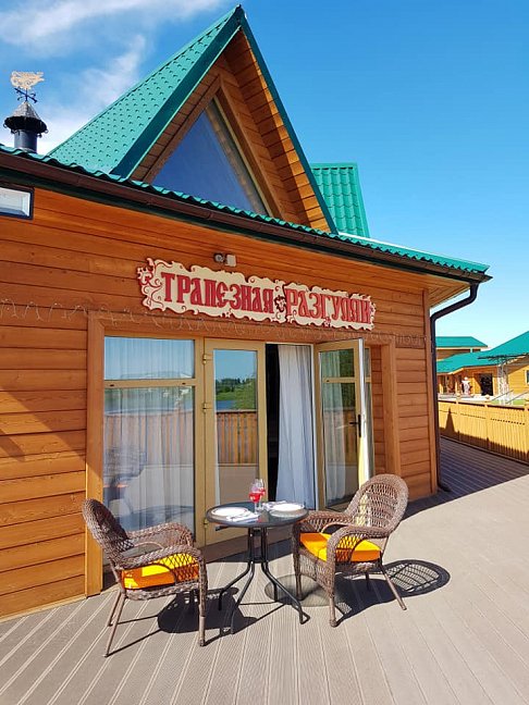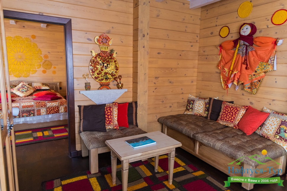 Оригинальное оформление, незабываемый интерьер, внутреннее убранство в стиле Сибирской Масленицы органично сочетаются с высоким уровнем комфорта и сервиса. Размещение происходит в комфортабельных номерах деревянных одноэтажных корпусов, общая вместимость которых составляет 28 мест.