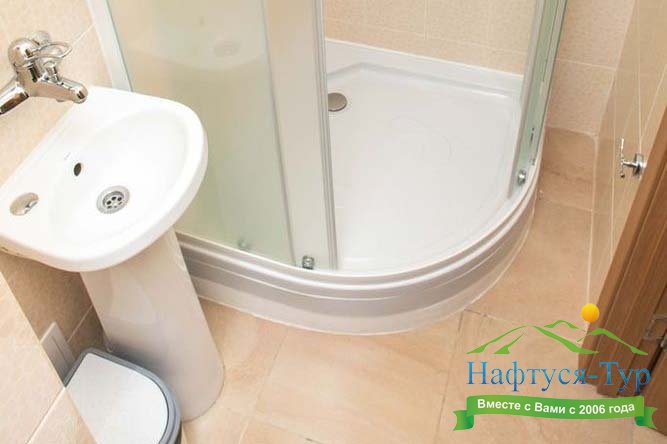 с душевой кабиной, туалетные принадлежности