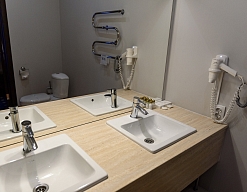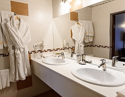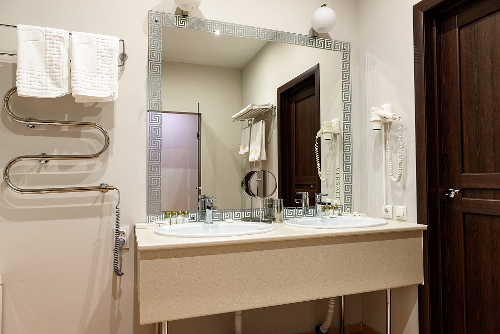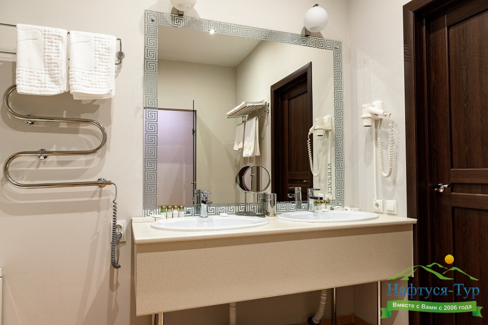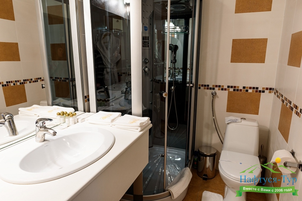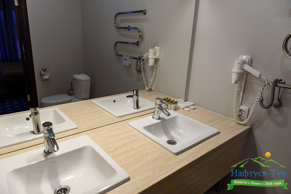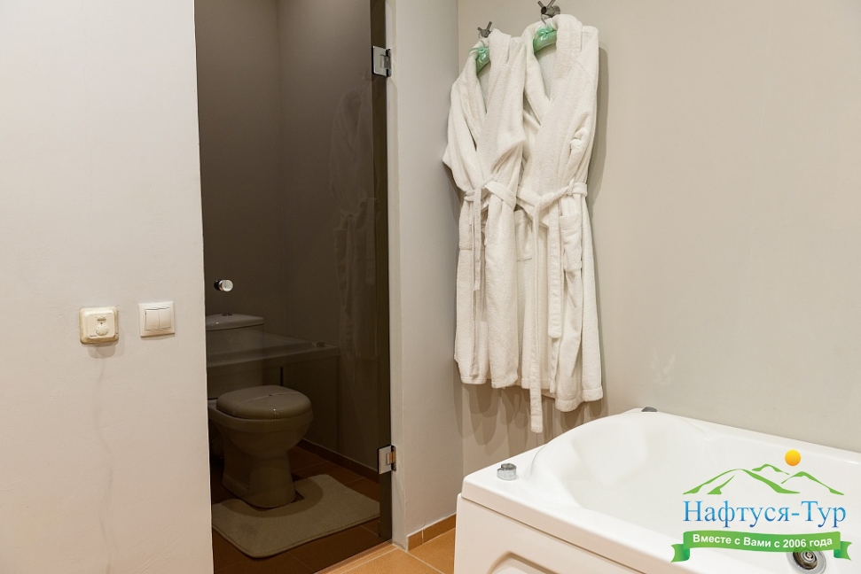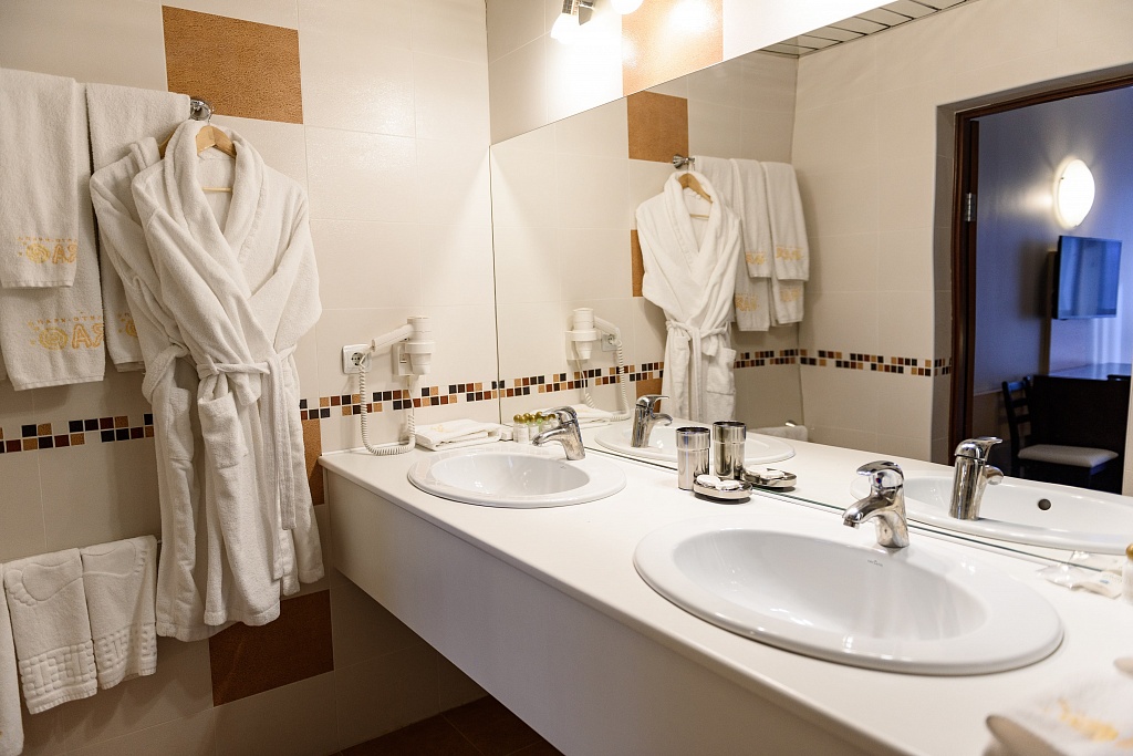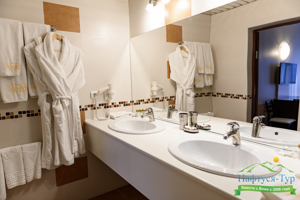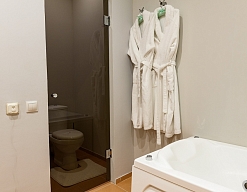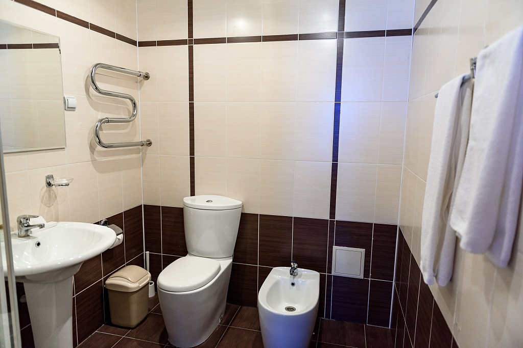 биде, с душем, туалетные принадлежности, фен, халат