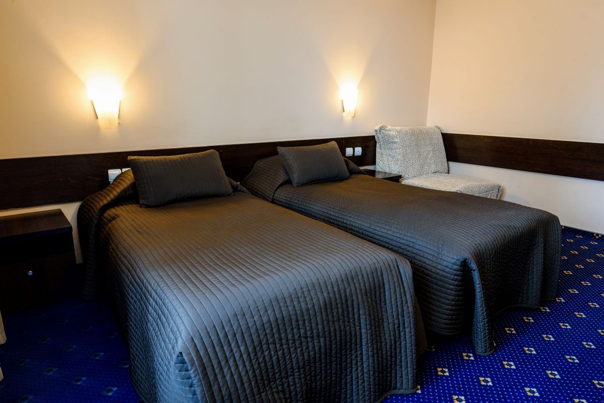 кровати односпальные /одна двуспальная кровать, прикроватные тумбочки, стол, шкаф встроенный