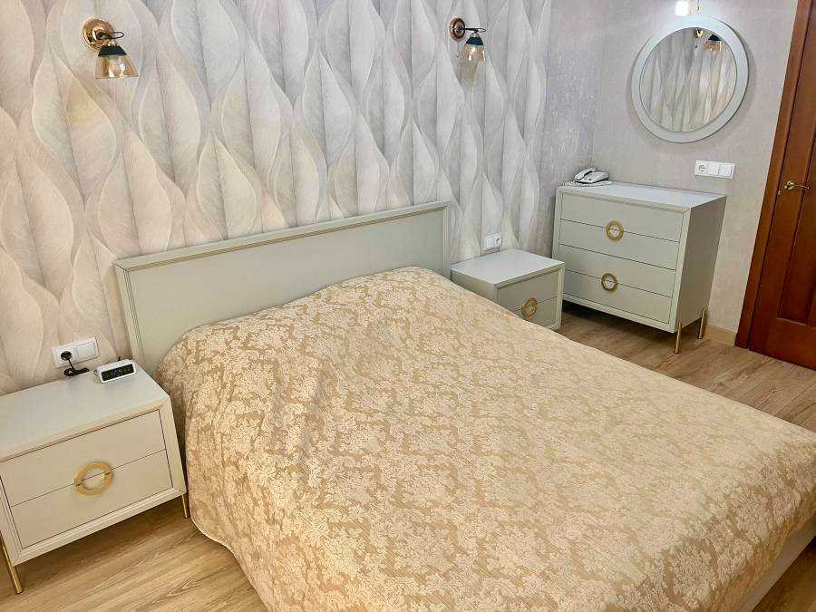 зеркало, комод, кровать двуспальная, набор мягкой мебели, прикроватные тумбочки, стол, столик туалетный, стулья, шкаф-купе, шкаф для посуды