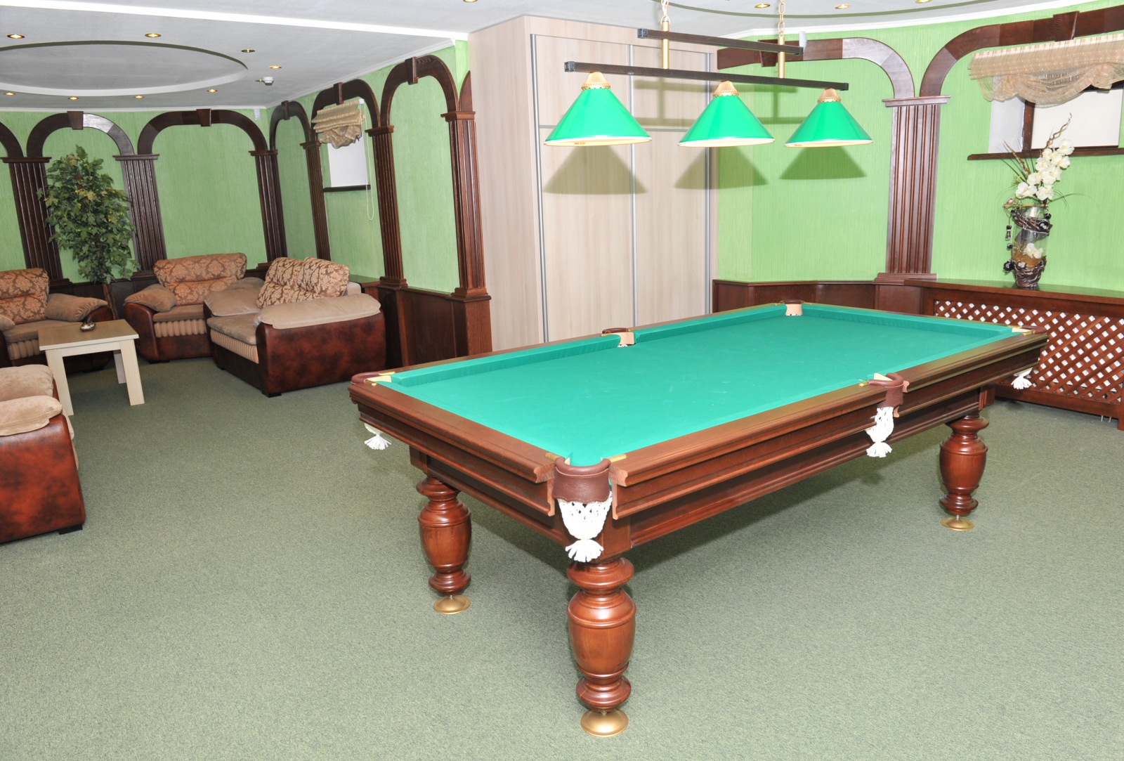 бильярд, кофемашина, микроволновая печь, набор посуды, телевизор ЖК, холодильник, электрическая плита