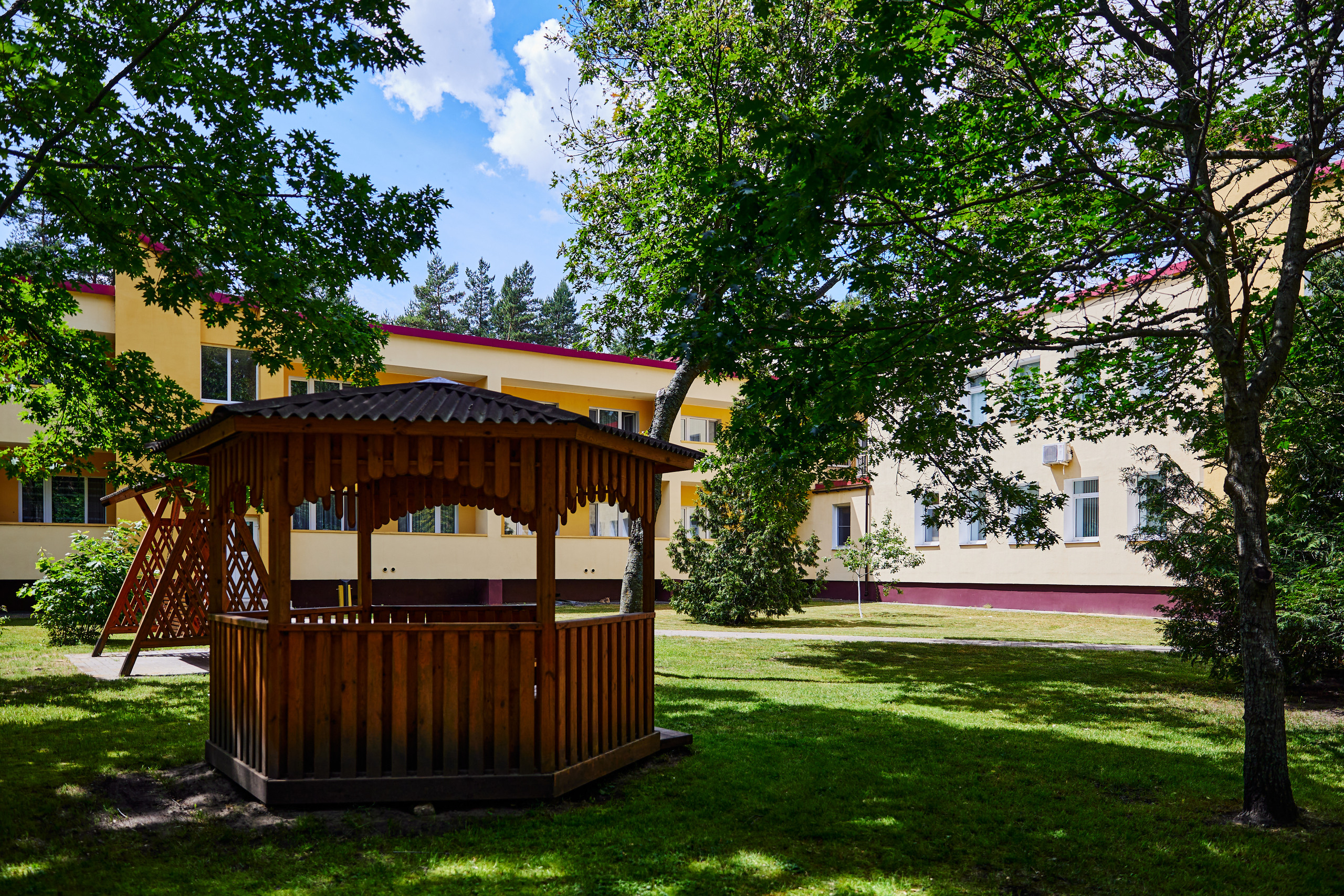 На территории санатория есть зоны отдыха, спортивные площадки, прогулочные маршруты и места для спокойного досуга. Также организуются культурные мероприятия и активный отдых для гостей.