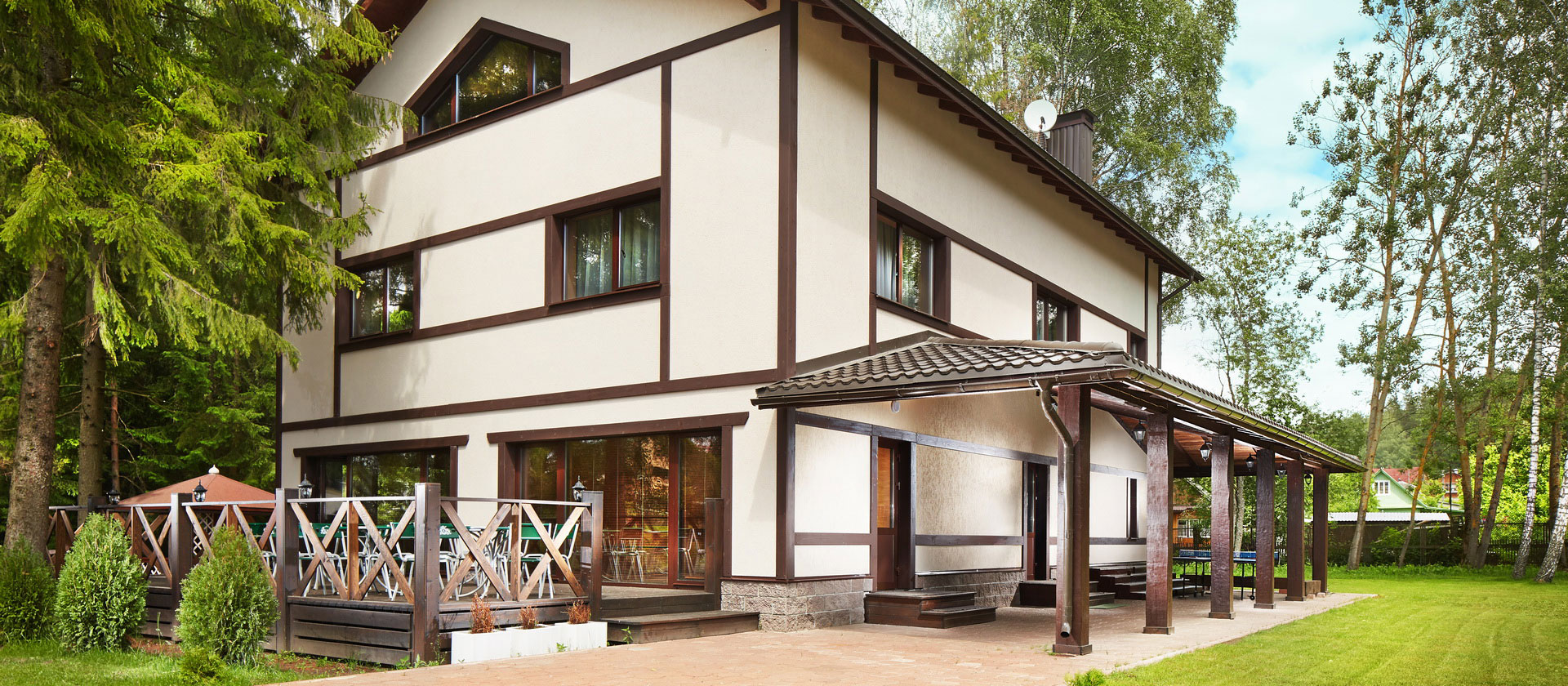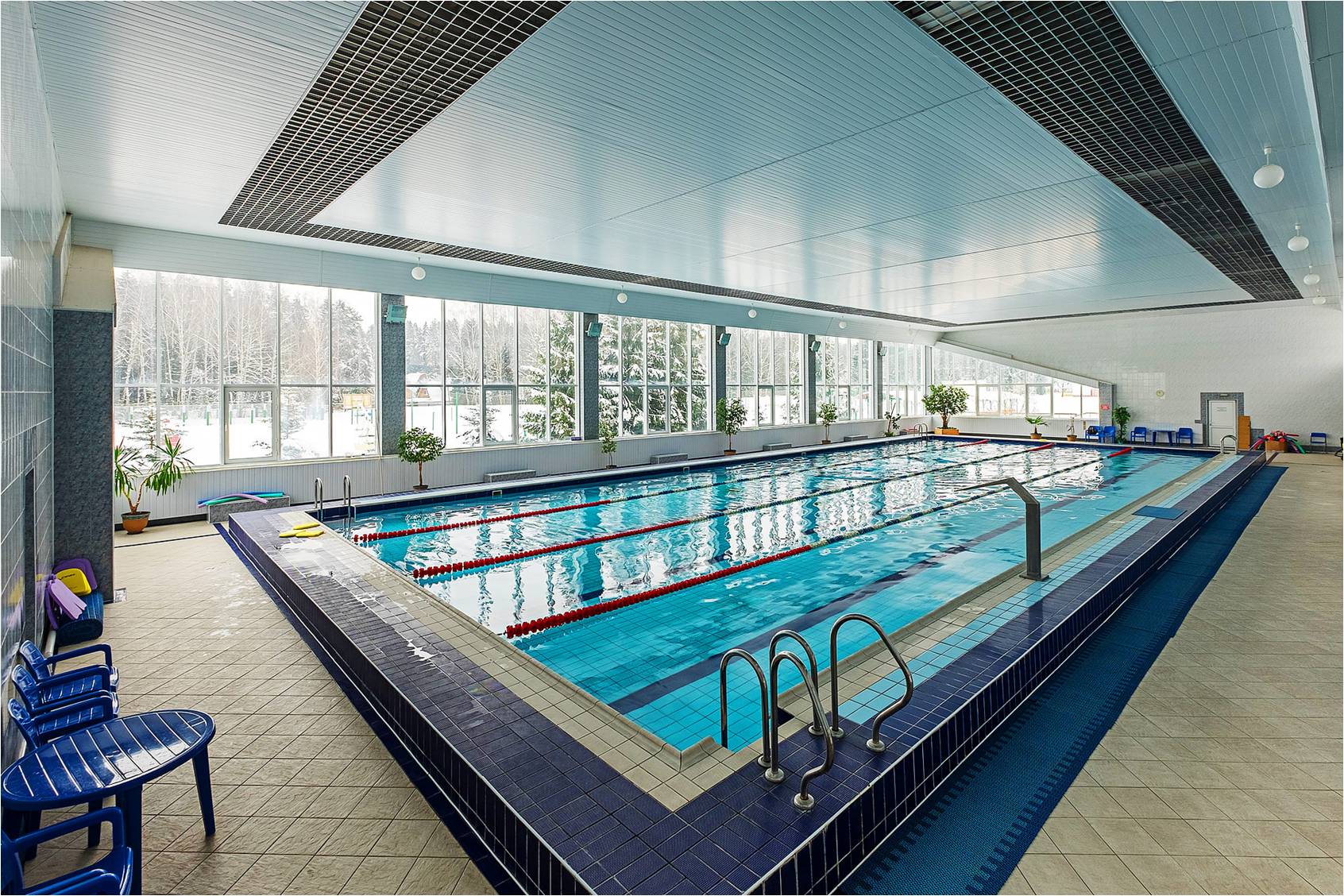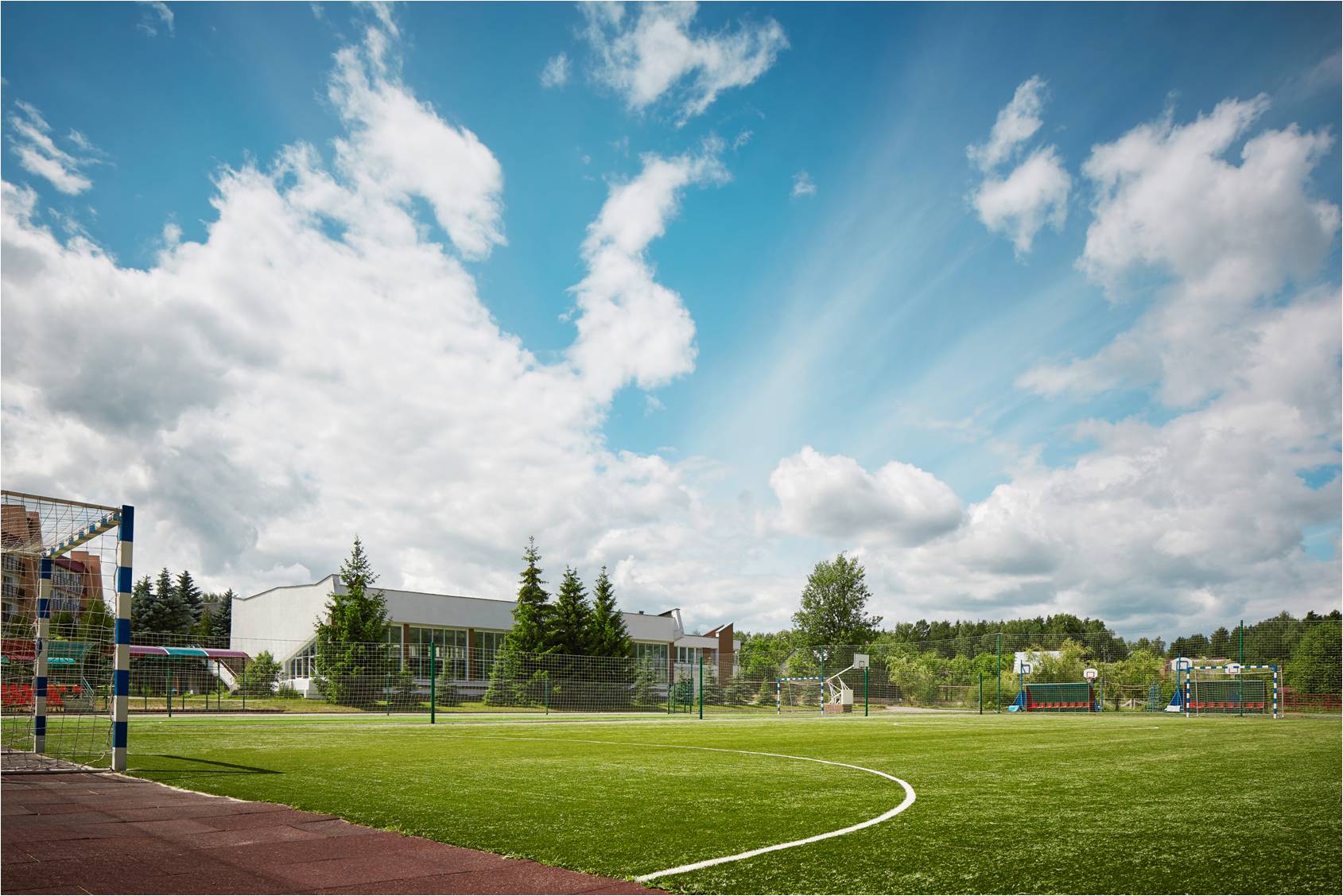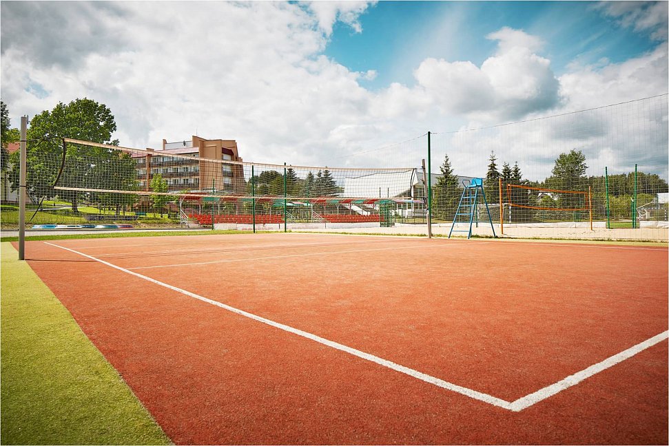 На территории есть крытый бассейн, сауна, тренажерный зал, спортивные площадки, зоны отдыха и прогулочные маршруты в лесу. Также проводятся культурные мероприятия и активный досуг для гостей.