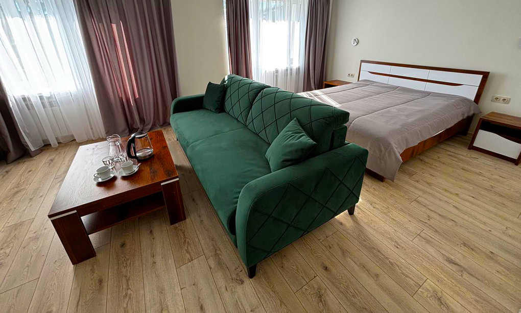 Санаторий «Зеленый бор» предлагает комфортные номера различных категорий с необходимыми удобствами. Питание организовано по сбалансированному меню с учетом диетических рекомендаций и медицинских показаний.