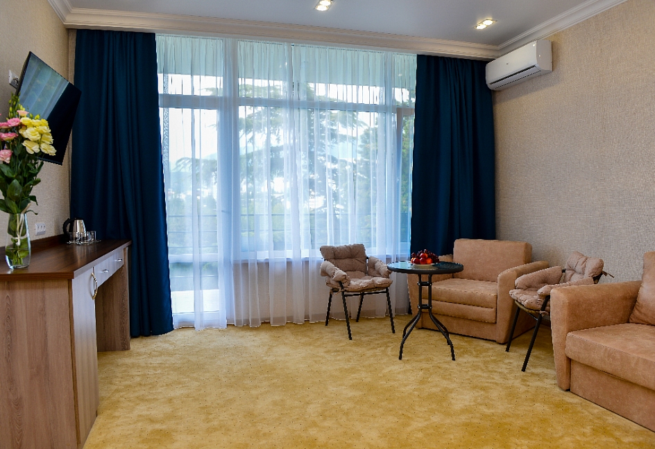 Спасибо за отдых. Номер комфортный. Очень чисто. Природа обалденная. Питание достаточное и вполне вкусное. Единственный мину - это пляж. Лежаки расставлены по всему пляжу, но стоимость лежака 200 рублей.