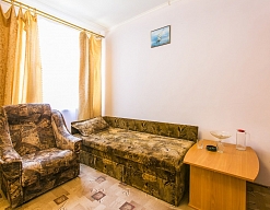 Пансионат довольно простой с обычными небольшими номерами. На территории два корпуса и отдельные домики. Остановка транспорта рядом. Нас поселили в замечательный домик. Горячая вода всегда была в наличии, в комнате 3 кровати, санузел с душевой кабинкой.