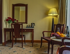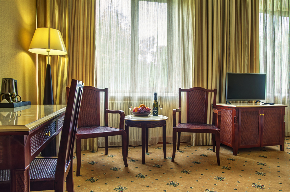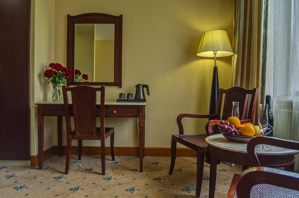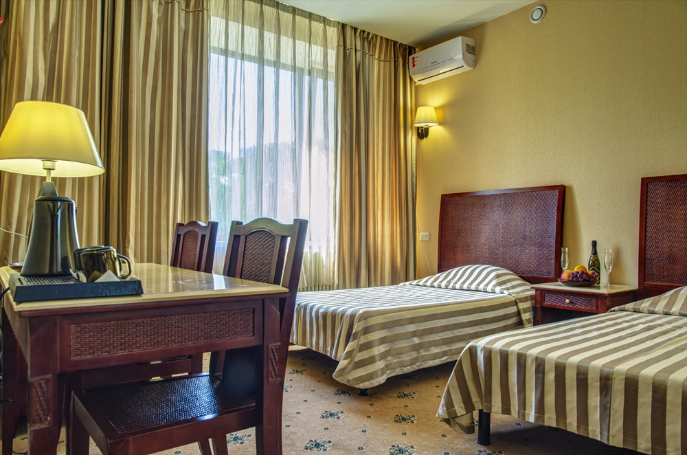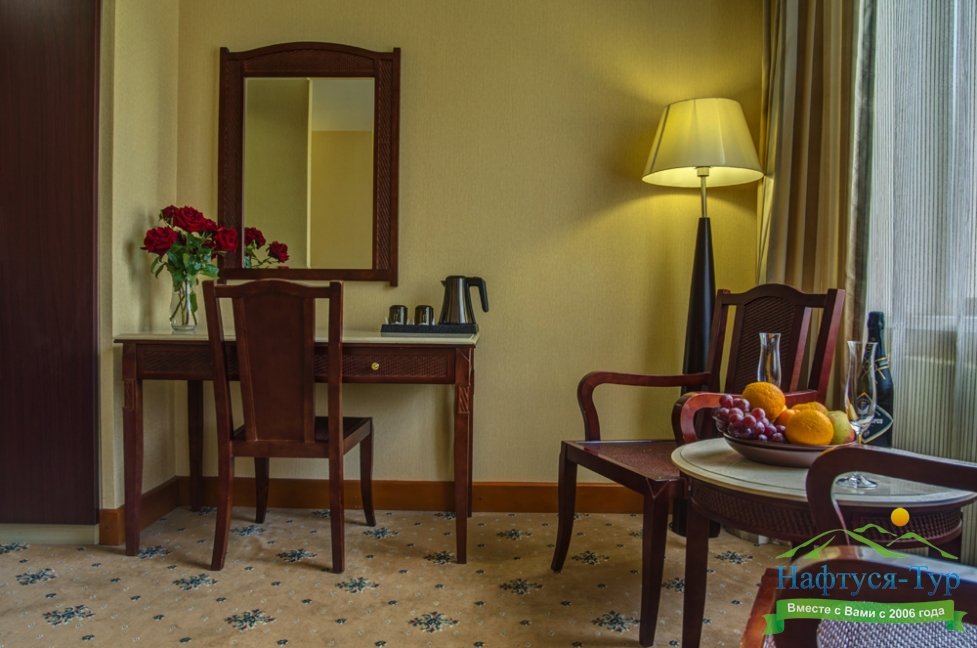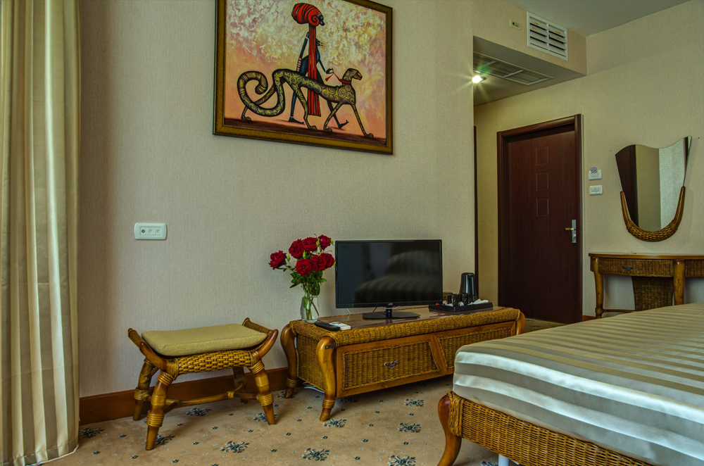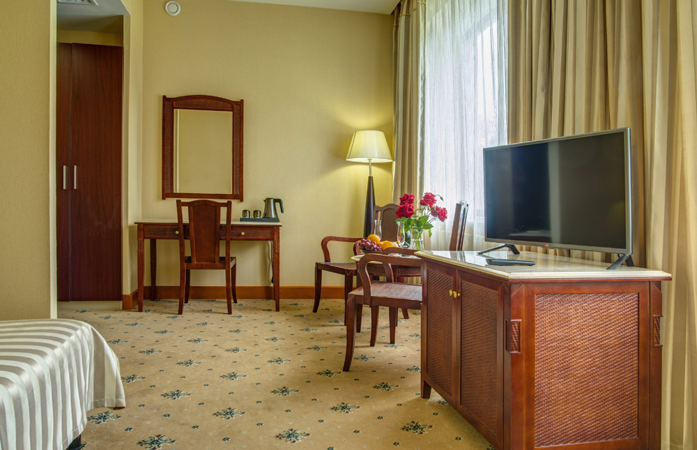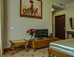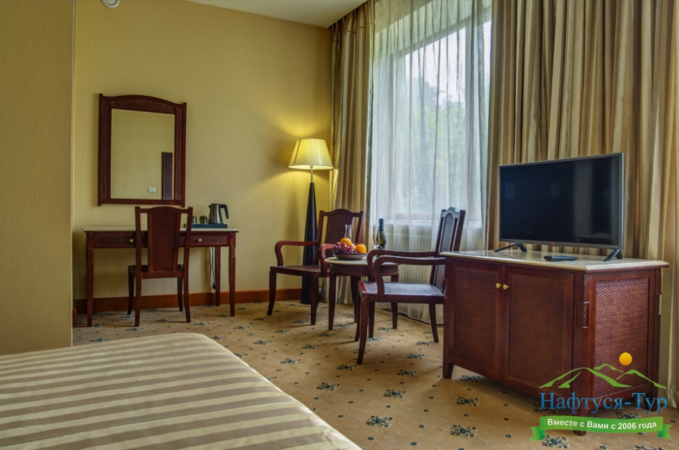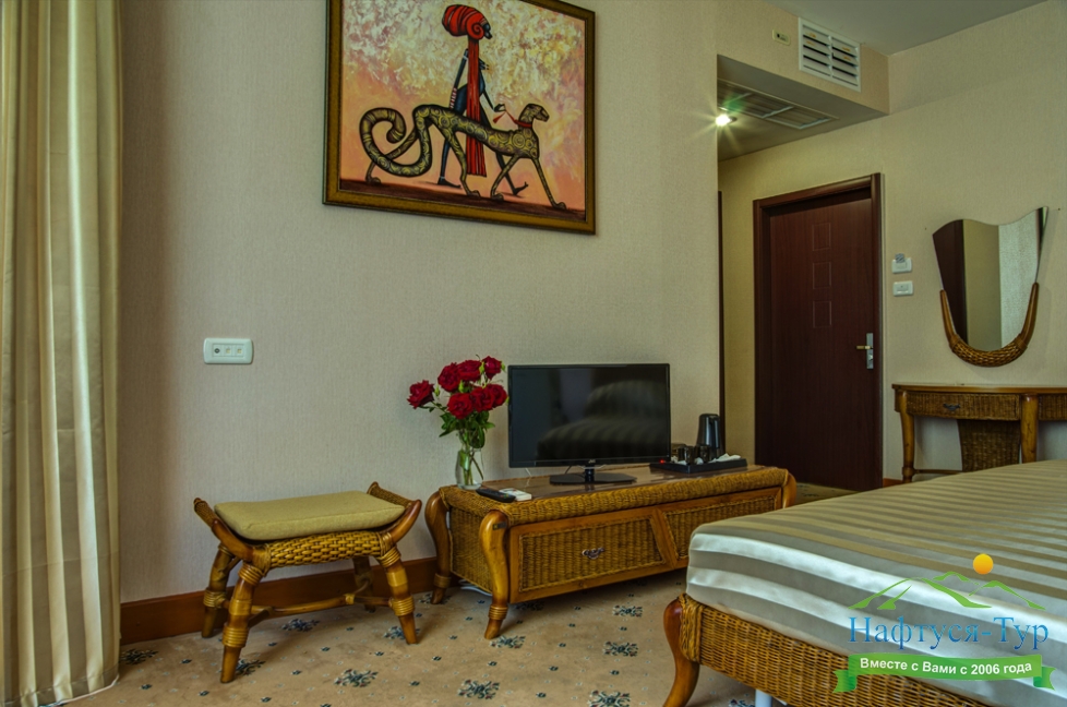 мини-холодильник, набор посуды, сейф, система общего кондиционирования, сплит-система, телевизор ЖК, телефон, чайный набор посуды, электрочайник
