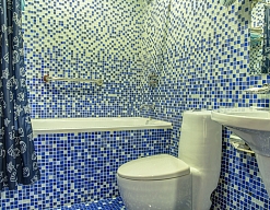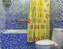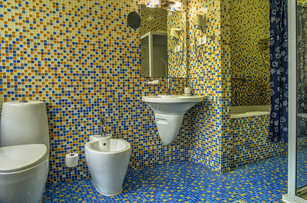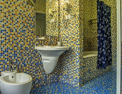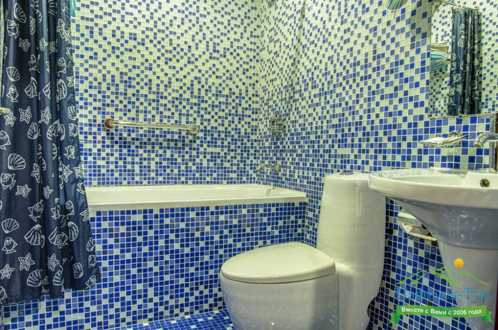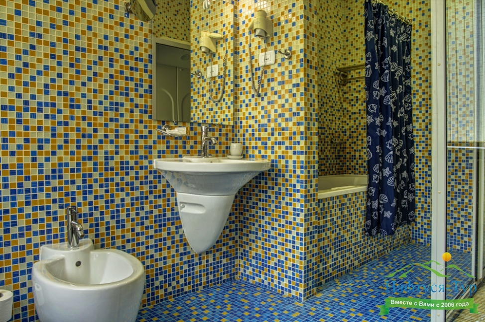 биде, с ванной, тапочки, туалетные принадлежности, фен, халат