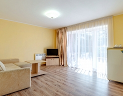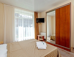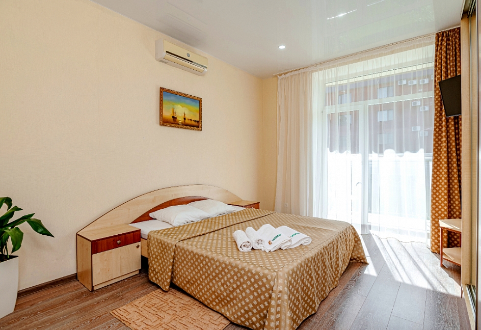 Отличный отель! Персонал очень приятный! Приехали поздно ночью уставшие... Нас заселили без проблем перенесу оплату на следующий день! В отеле тихо... можно спокойно выспаться и зарядить энергией на следующий день! До моря не спеша песочного минут 10 через территорию санатория.