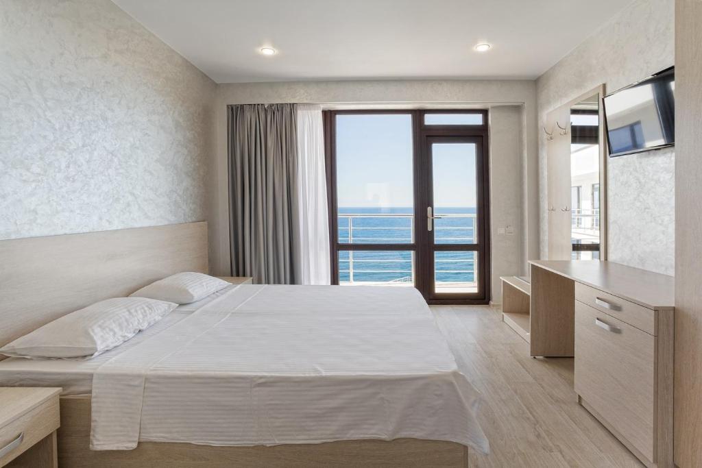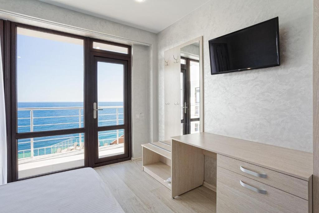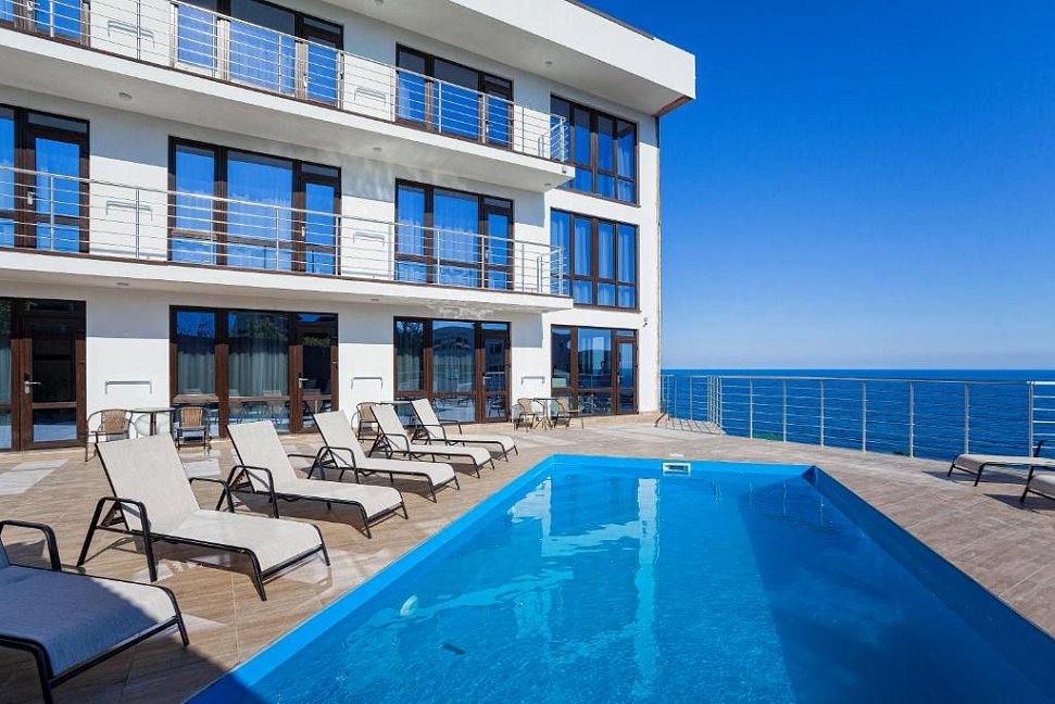 Удивительный вид из номеров отеля на Черное море и бухту, расстилающуюся под вашими ногами, просторный бассейн с потрясающим видом, шаговая близость к морю с прекрасным мелкогалечным пляжем – это первое, что можно сказать о нашем отеле в Ялте.