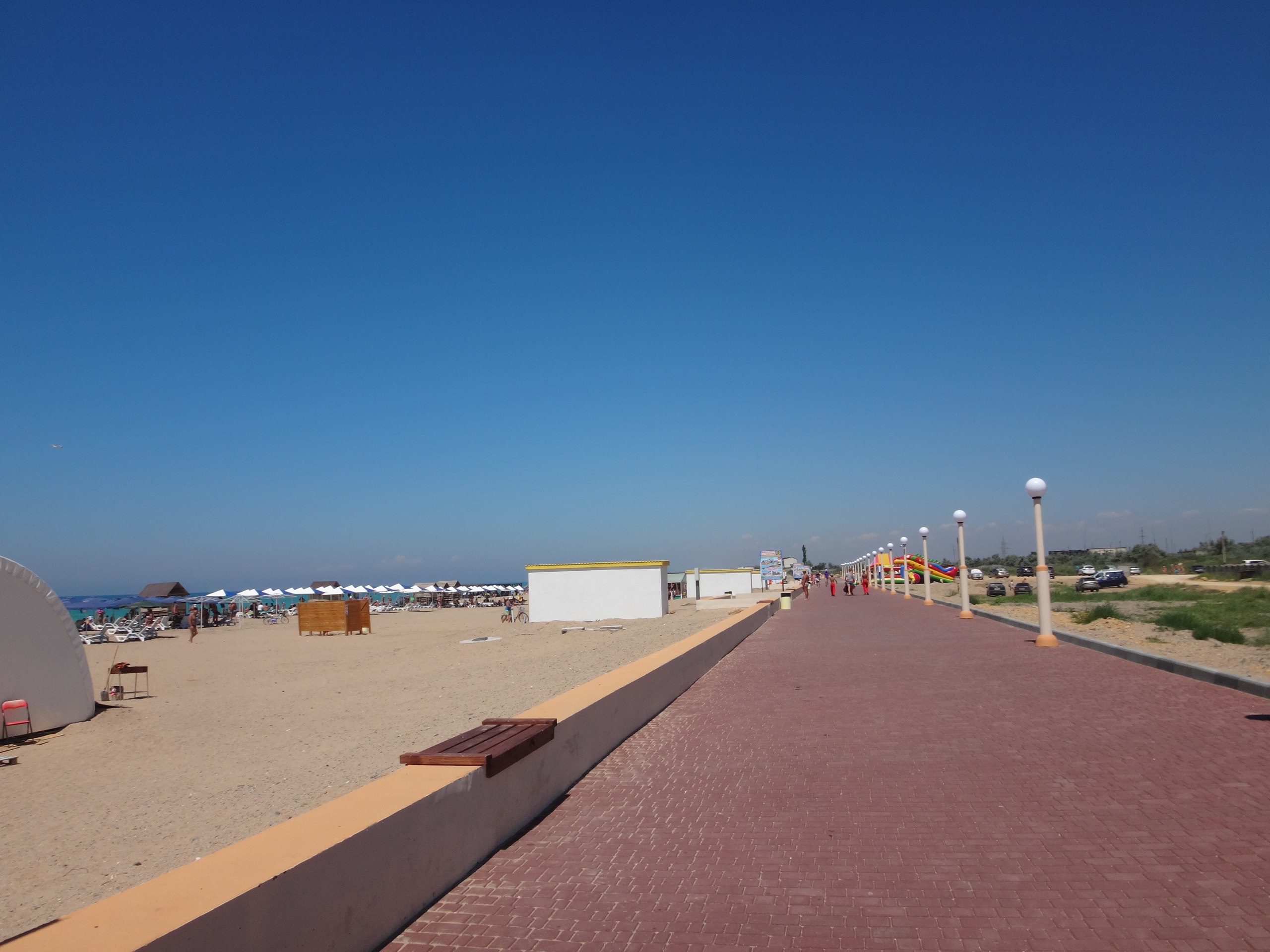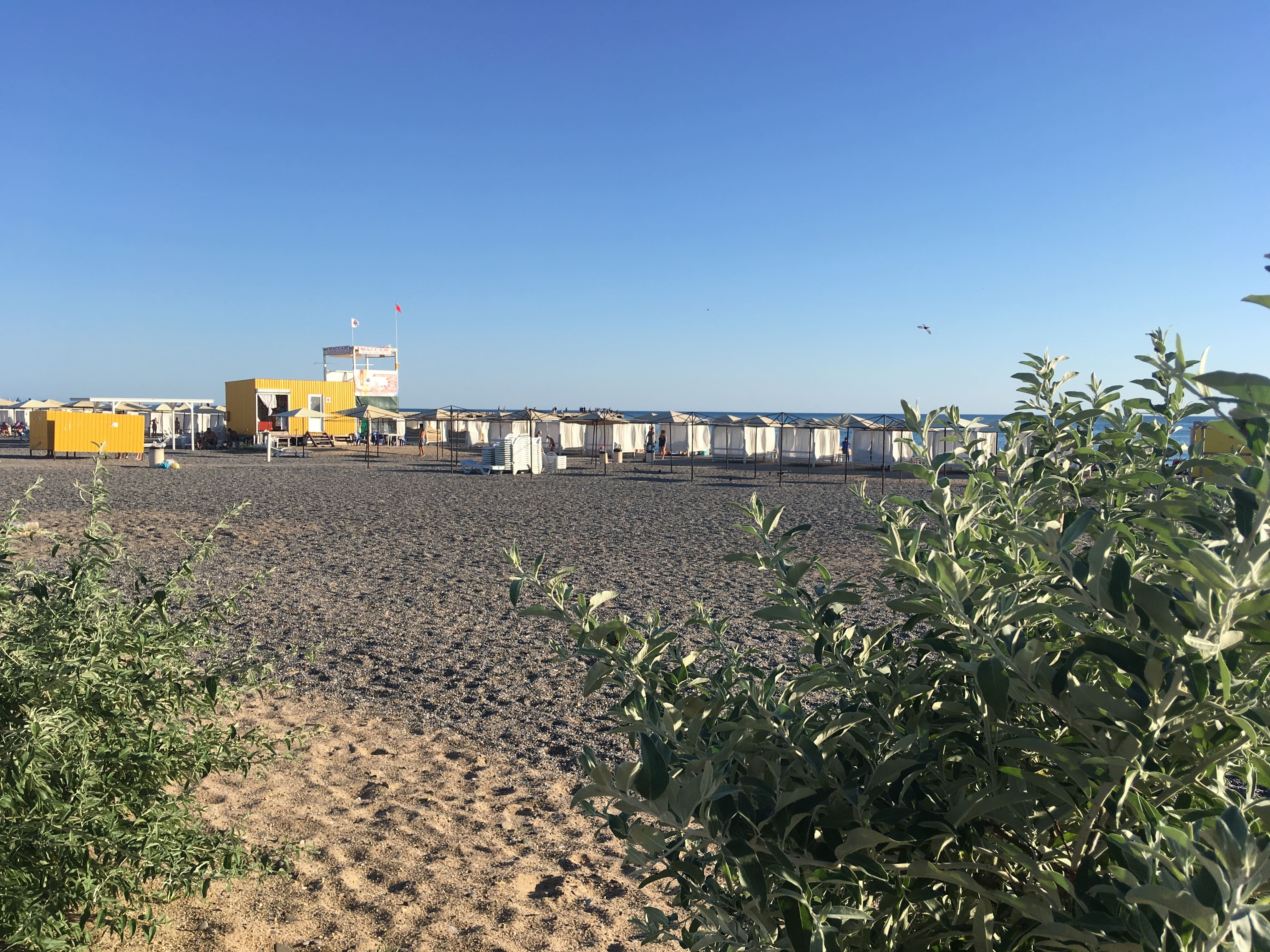Сюда часто приезжают семьи с маленькими детьми, которые могут весело плескаться в море на небольшой глубине и играть с песком и мелкой галькой на просторном пляже поселка.