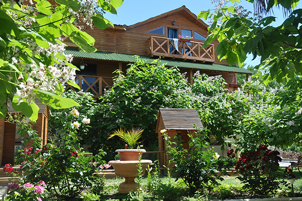 Поездом до ж/д вокзала г.Симферополь, далее от автостанции "Курортная" маршрутным такси Симферополь- Рыбачье до пос.Солнечногорское, в Солнечногорском остановка "Поворот на Генеральское-Водопад-Джур-Джур", по ул Вишнёвая вверх 350 м первый поворот направо и вверх 50 м по пер Персиковому до отеля.