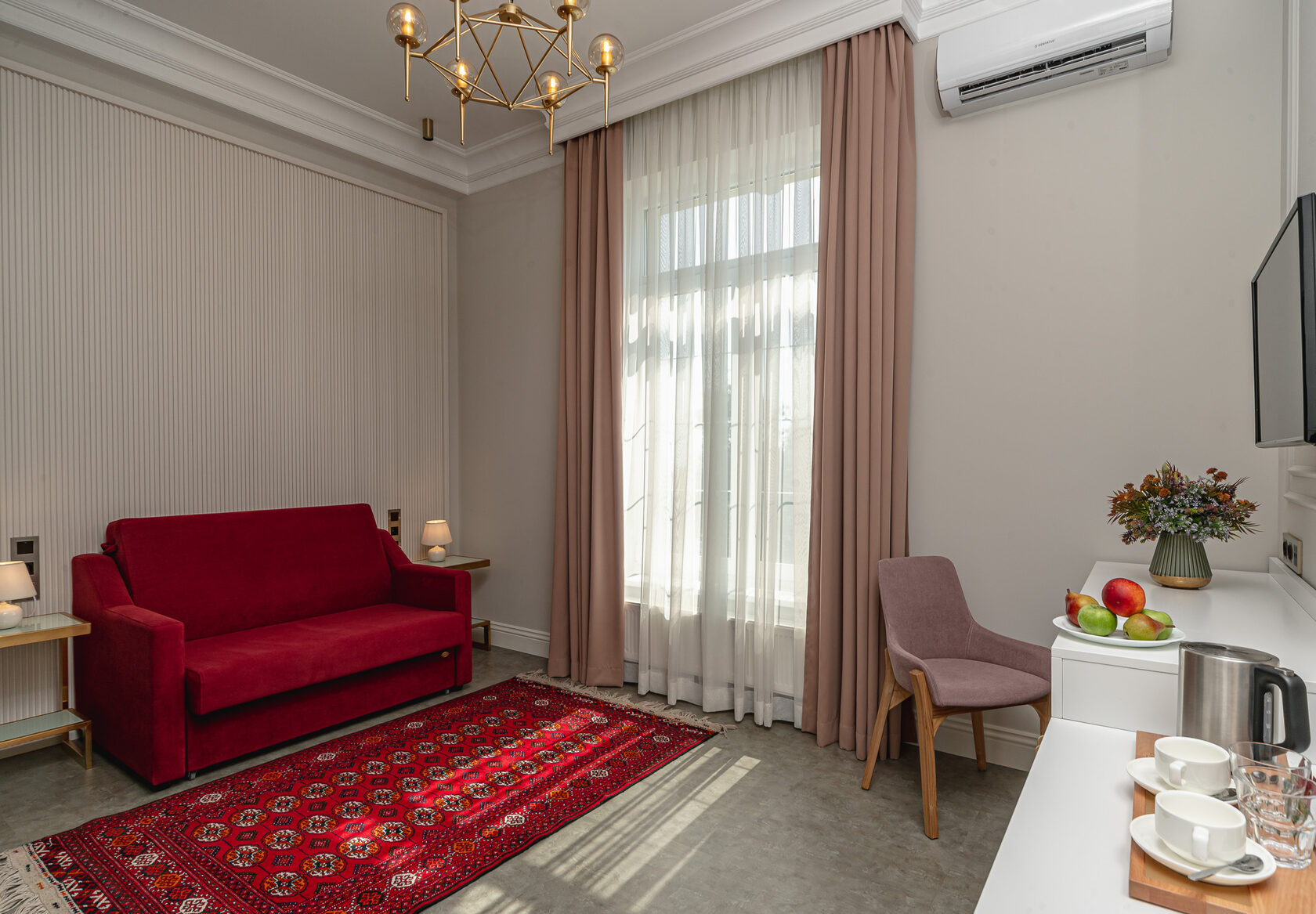 Поездом до ж/д вокзала г. Симферополь, далее на троллейбусе «Аэропорт-Симеиз» до остановки «Пожарка / Музей Амет-Хана Султана», далее пройти пешком 710 м до отеля.