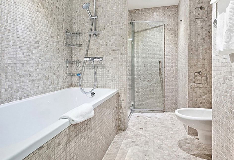 с душевой кабиной, тапочки, фен, халат