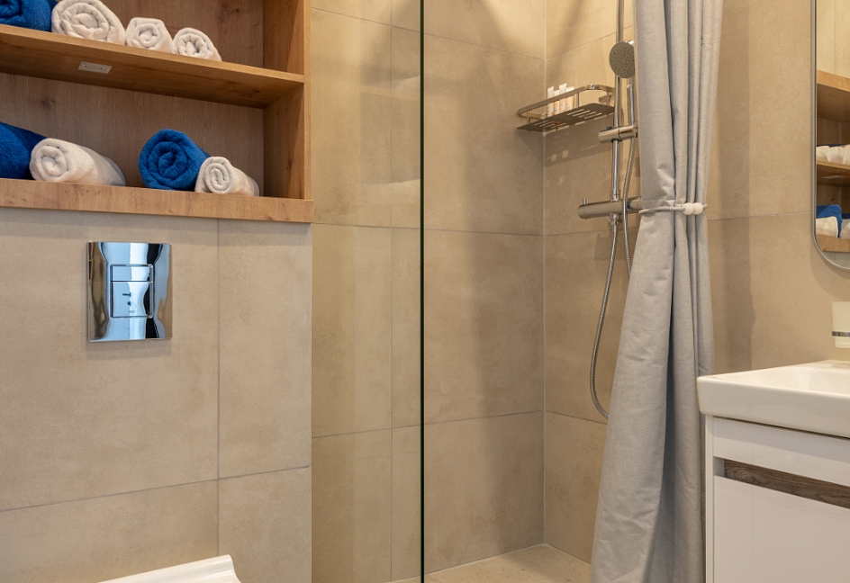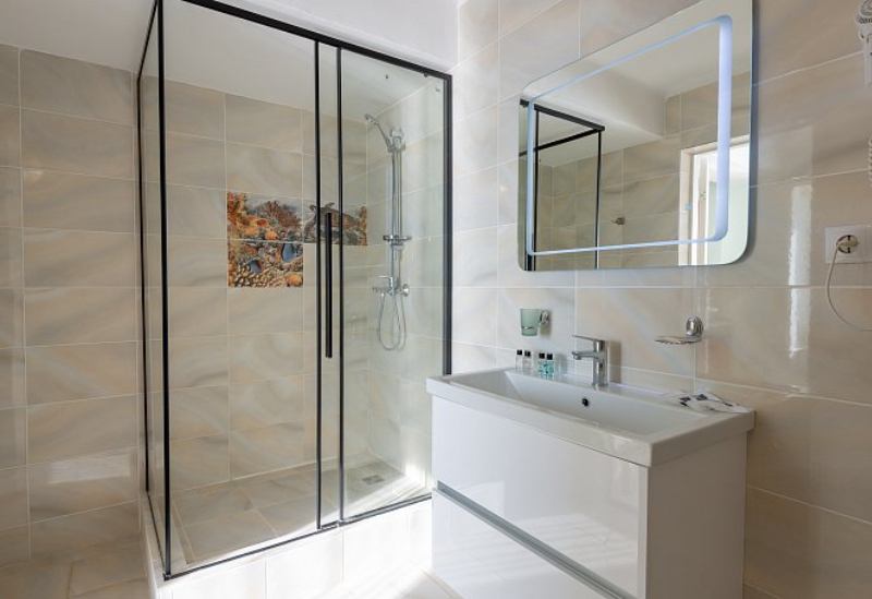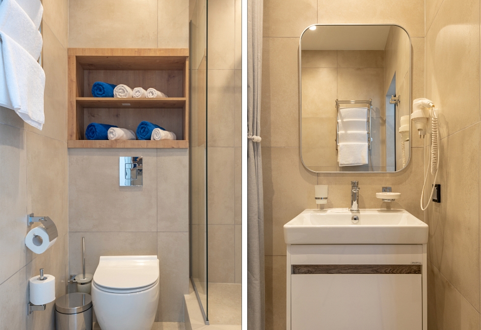 с душем, туалетные принадлежности, фен
