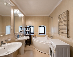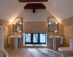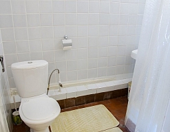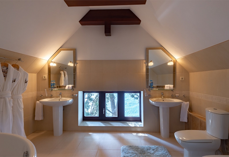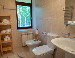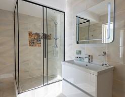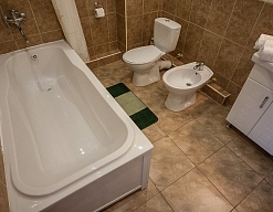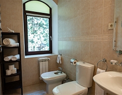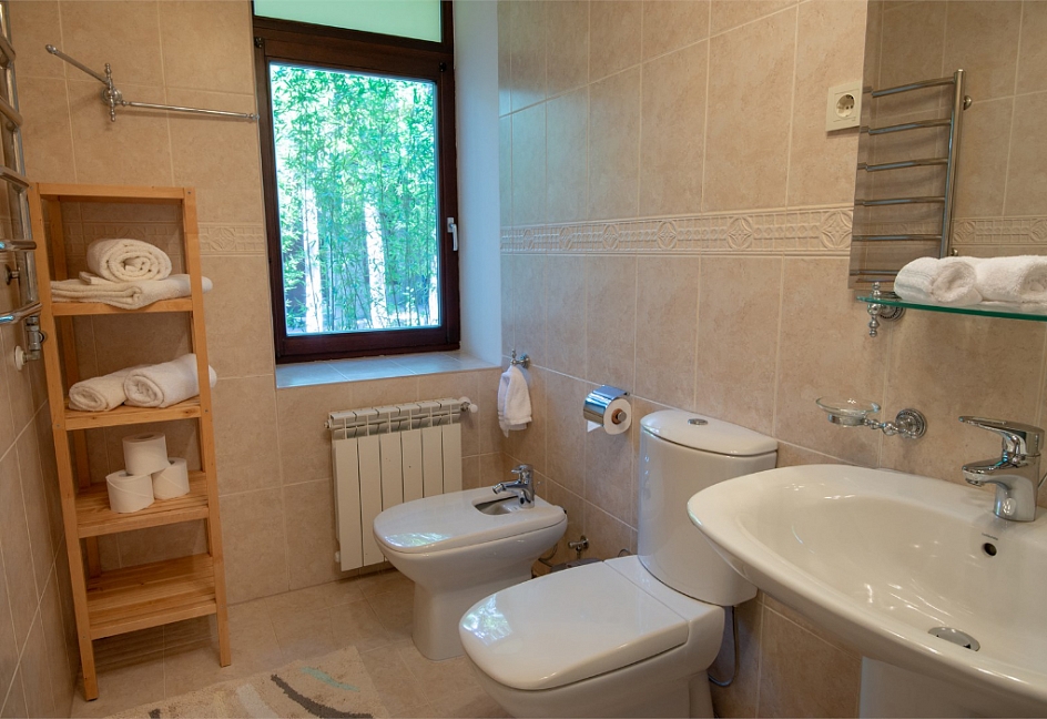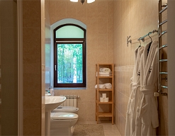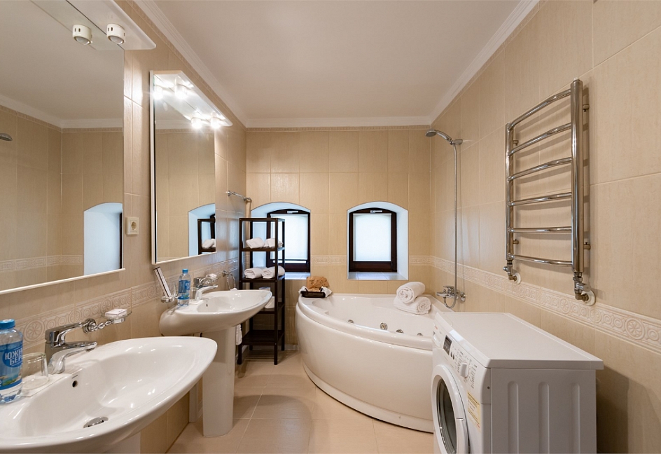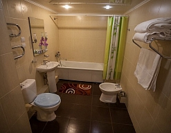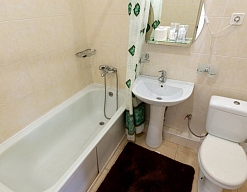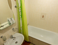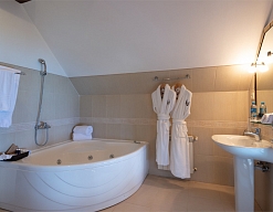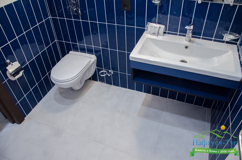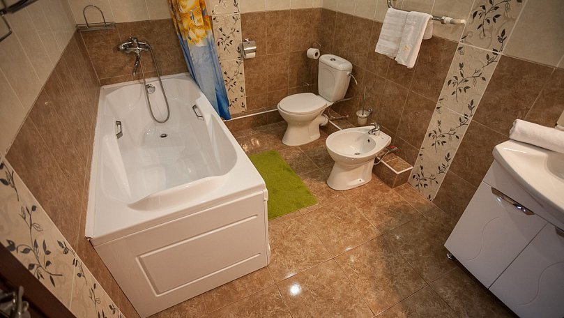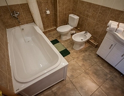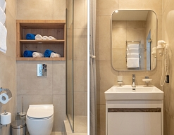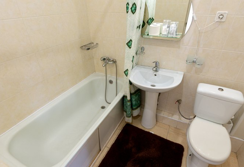 с душем или ванной, туалетные принадлежности, фен, халат